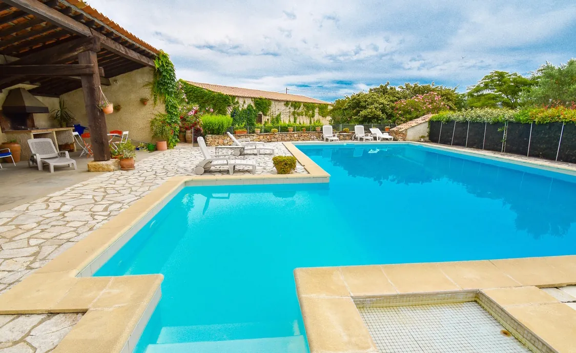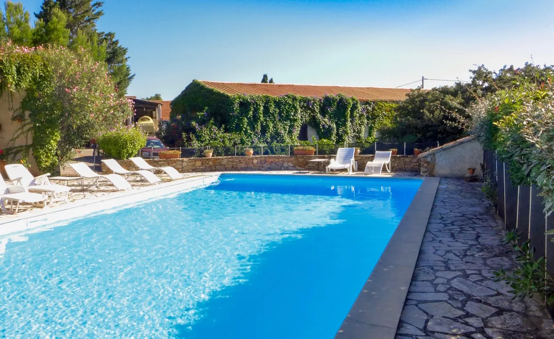 Es steht auf einem 1.000 m² großen Garten und hat ein großes Schwimmbad, das mit zwei anderen Häusern geteilt wird. Die Möbel und die Inneneinrichtung sind hoch qualitativ. Das Haus liegt am Eingang der Region "Corbières", berühmt für seine Landschaft und seine Weine. Sie haben hier Sicht über die Weinberge.