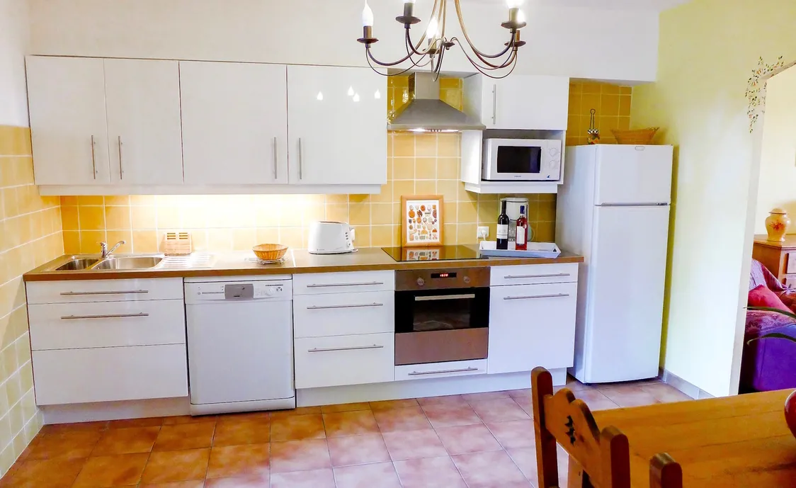 - Ausstattungen: Backofen, Gefrierschrank, Geschirrspüler, Kaffeemaschine, Kochplatten, Küchenutensilien, Kühlschrank, Mikrowelle, Waschmaschine