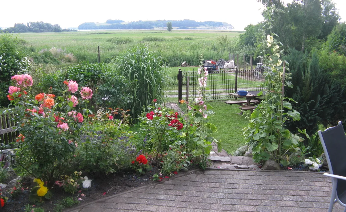 Auf der großen Süd-West Terrasse, mit abgeschlossenen Garten, hat man einen herrlichen Blick auf die Ostsee und dem Greifswalder Bodden. Der Ort liegt im malerischen Biosphärenresevat Südost Rügen und lädt durch seine hügelige Landschaftsform ein, zum wandern und relaxen.