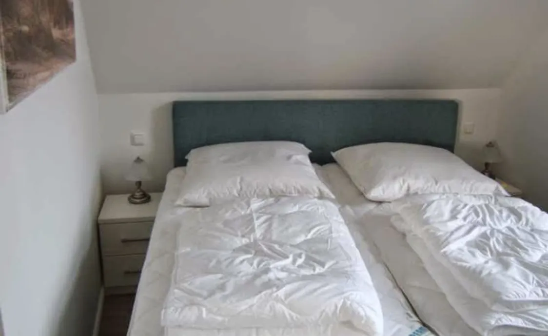 Die beiden 3-Zimmer-Ferienwohnungen befinden sich beide im Obergeschoß + Spitzboden eines Dreifamilienhauses und bestehen jeweils aus gemütlichem Wohnbereich, Küchen- und Eßecke, einem Schlafzimmer mit Doppelbett (hochwertiges Boxspringbett), einem weiteren Schlafzimmer mit 2 Einzelbetten im Spitzboden, Bad mit Dusche sowie separatem Gäste-WC. Die sonnige Loggia in Südausrichtung rundet das Urlaubsvergügen ab … Weitere Highlights sind der Kaminofen im Wohnbereich und die fast eigene SAUNA, die Sie sich lediglich mit der zweiten Ferienwohnung im Obergeschoß teilen müssen!
