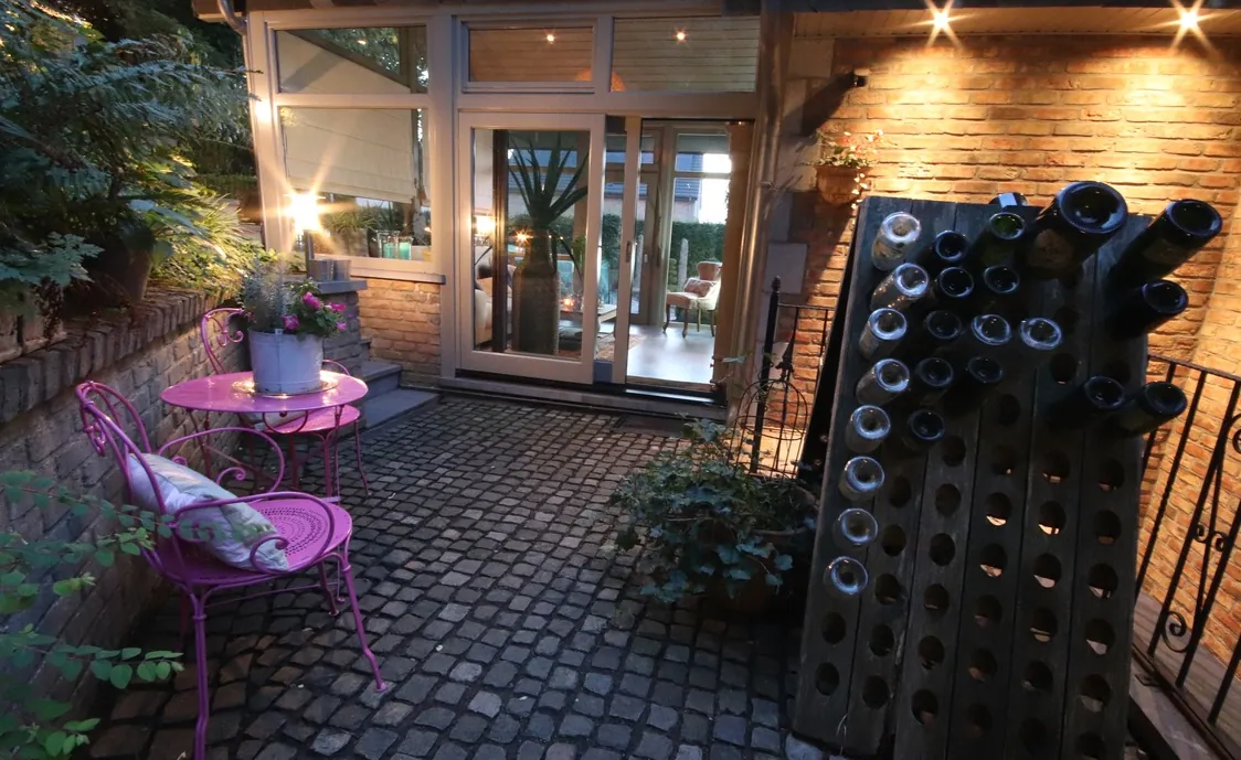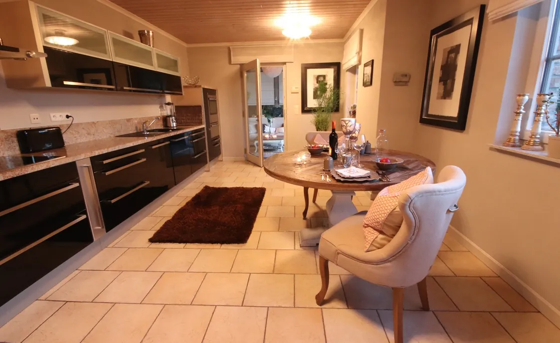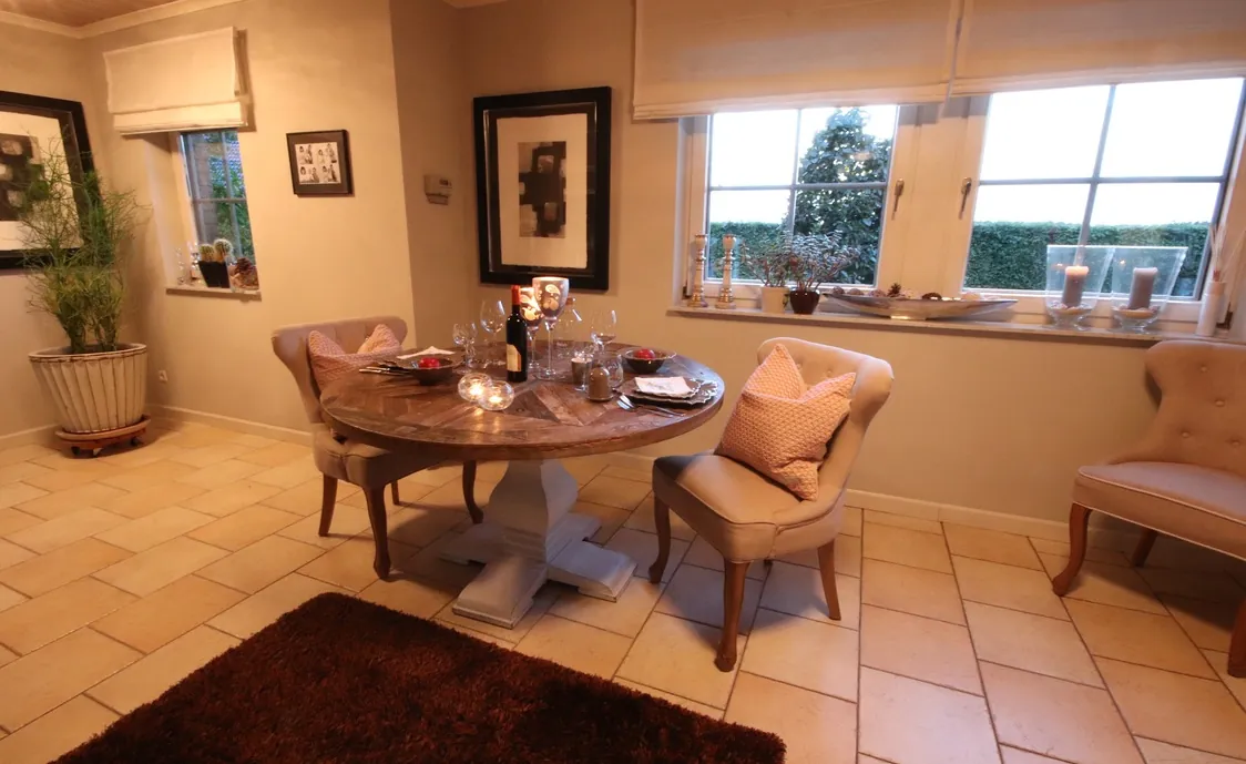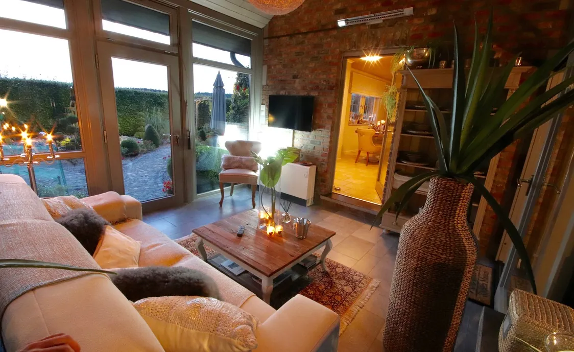 Die Suite ist sehr geschmackvoll eingerichtet. In der voll ausgestatteten Küche können Sie gemeinsam kochen und anschließend im Essbereich oder auf der Terrasse schlemmen. Im Wintergarten finden Sie ein gemütliches Sofa und den großen Flachbildfernseher. Genießen Sie vom Wintergarten aus die herrliche Aussicht auf den Garten.