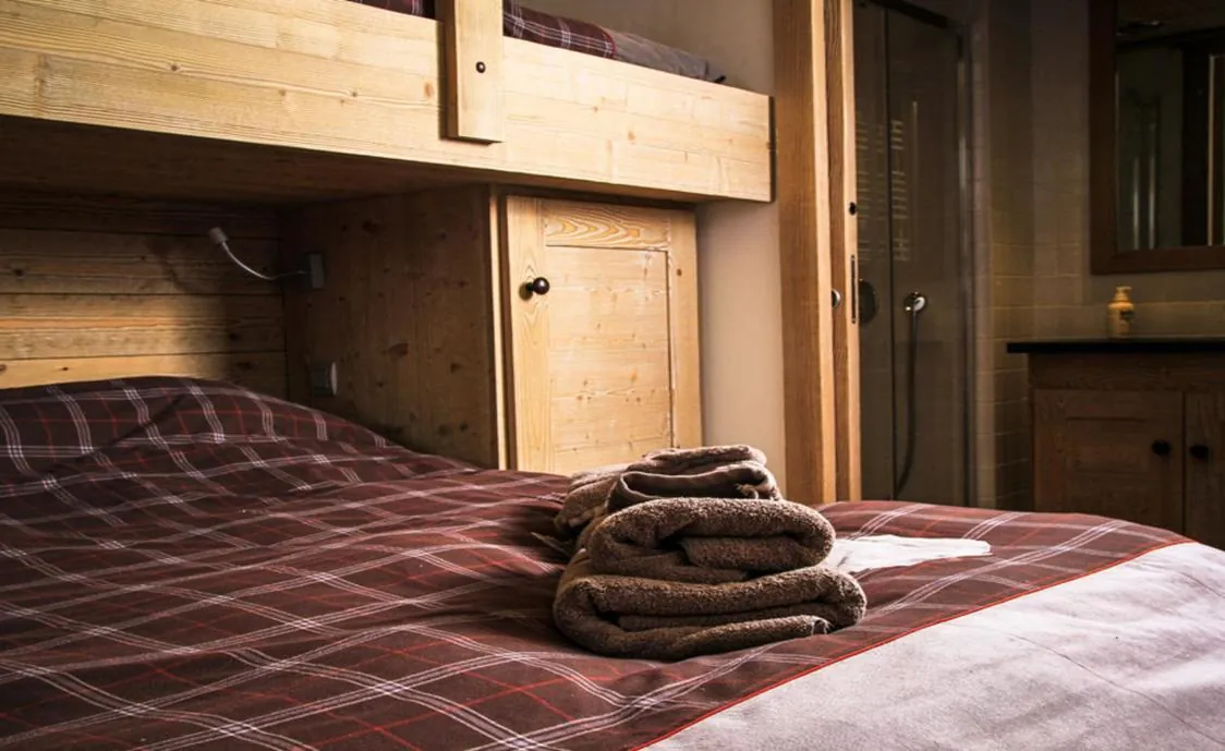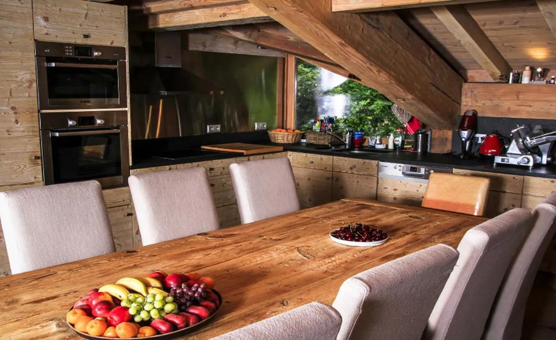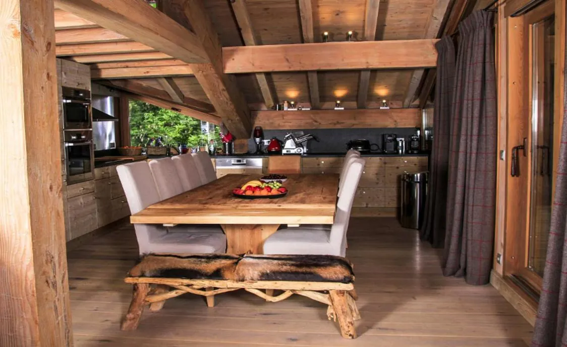 Modern, komplett ausgestattet bietet das Chalet ausreichend Platz bis zu 14 Personen. Das Chalet verfügt über 6 Schlafzimmer und 6 Badezimmer, ein Wohnzimmer mit Kamin, eine voll ausgestattete Küche und eine große überdachte Terrasse mit Aussicht auf die Berge.