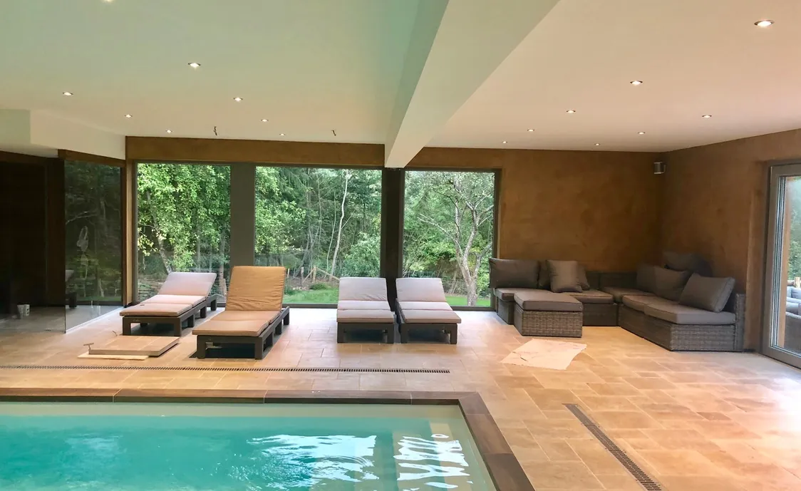 Das Ferienhaus mit privatem Innenschwimmbad und Sauna befindet sich in der Gemeinde von Trois-Ponts in den belgischen Ardennen. Die Ferienunterkunft liegt in einer ruhigen Lage und ist der ideale Ort um einen entspannten Familienurlaub zu verbringen.