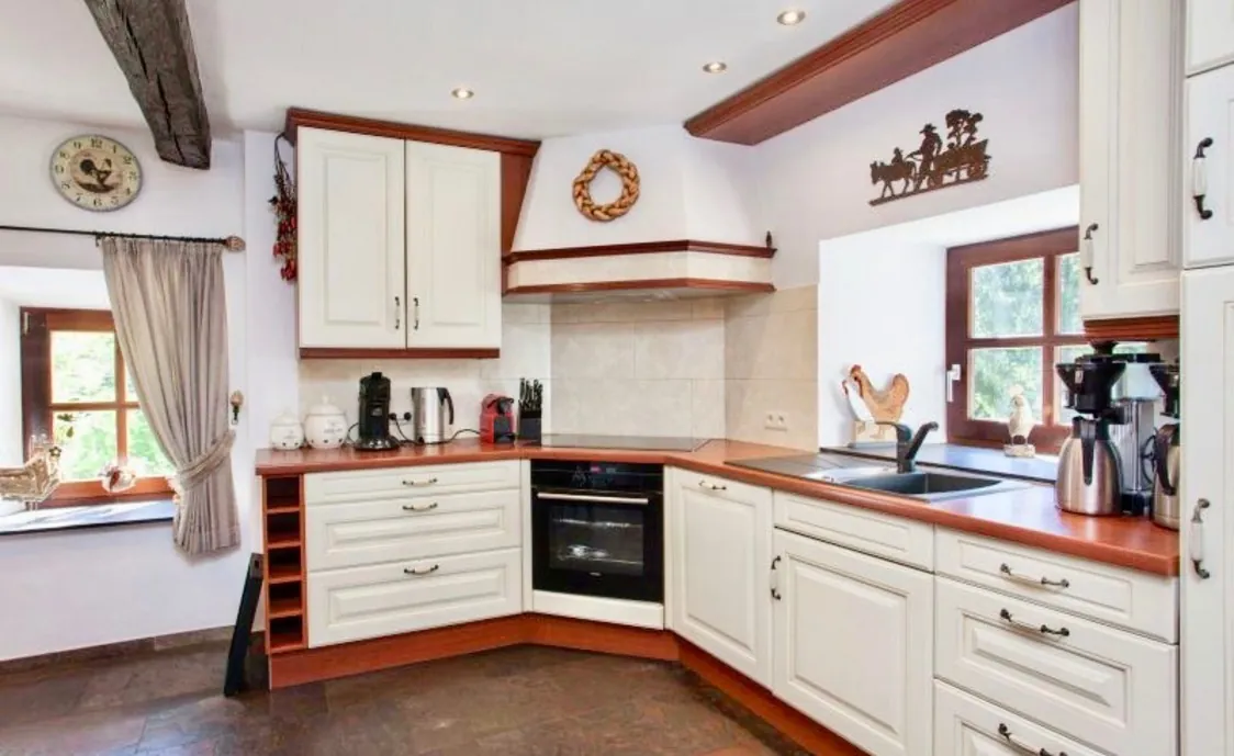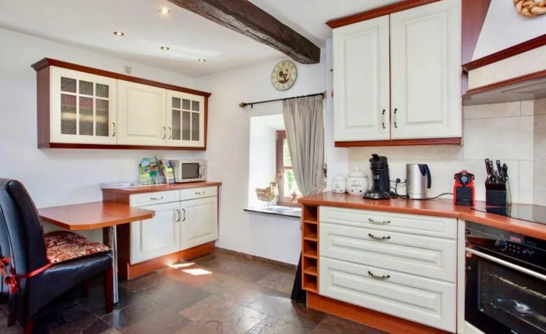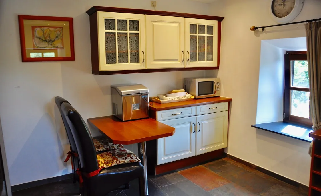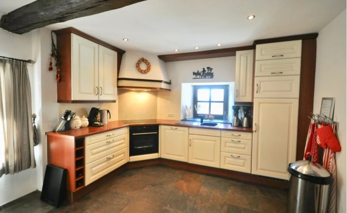 - Ausstattungen: Backofen, Elektrische Kochplatten, Gefrierschrank, Geschirr und Besteck, Geschirrspüler, Kaffeemaschine, Küchenutensilien, Kühlschrank, Mikrowelle, Wäschetrockner, Waschmaschine