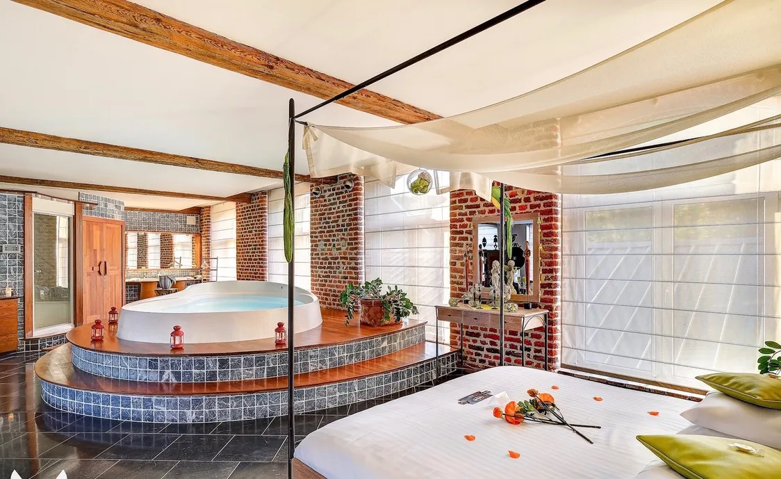 Das Loft ist ideal für ein romantisches Wochenende. Diese Suite wurde nach einem Konzept gebaut dass zentriert auf das Wohlbefinden zu zweit bestimmt ist. Die gesamte Suite ist ein offener Raum von 255 m2.