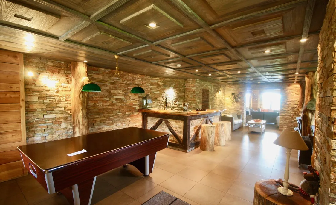 Ein Spielzimmer mit Minifoot und Airhockey steht Ihnen ebenso zur Verfügung, wie ein Wellnessbereich mit Schwimmbad, Sauna, Dusche und WC.