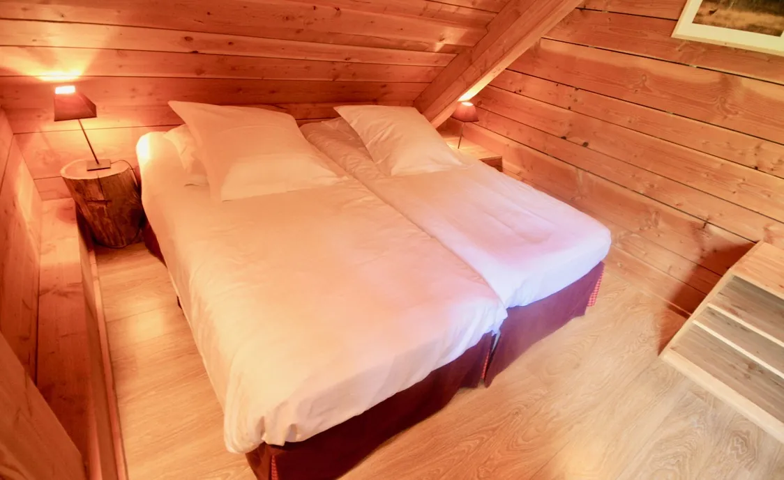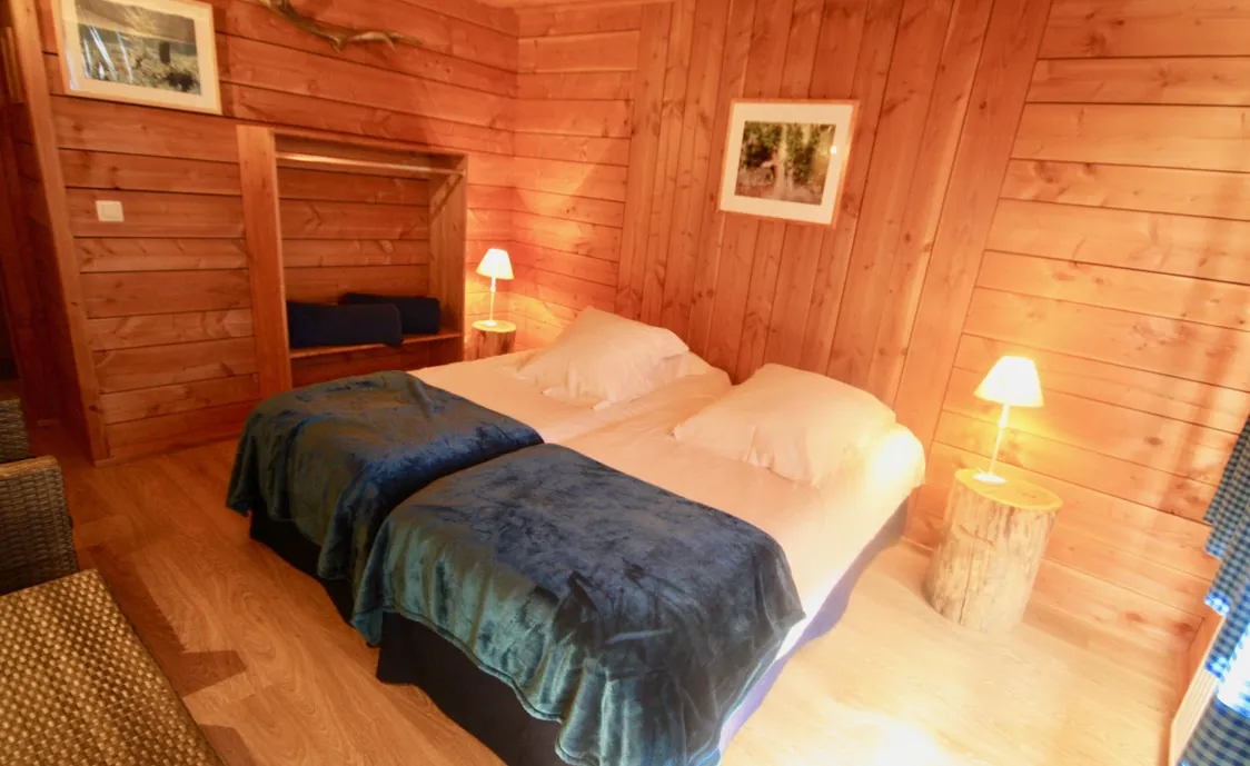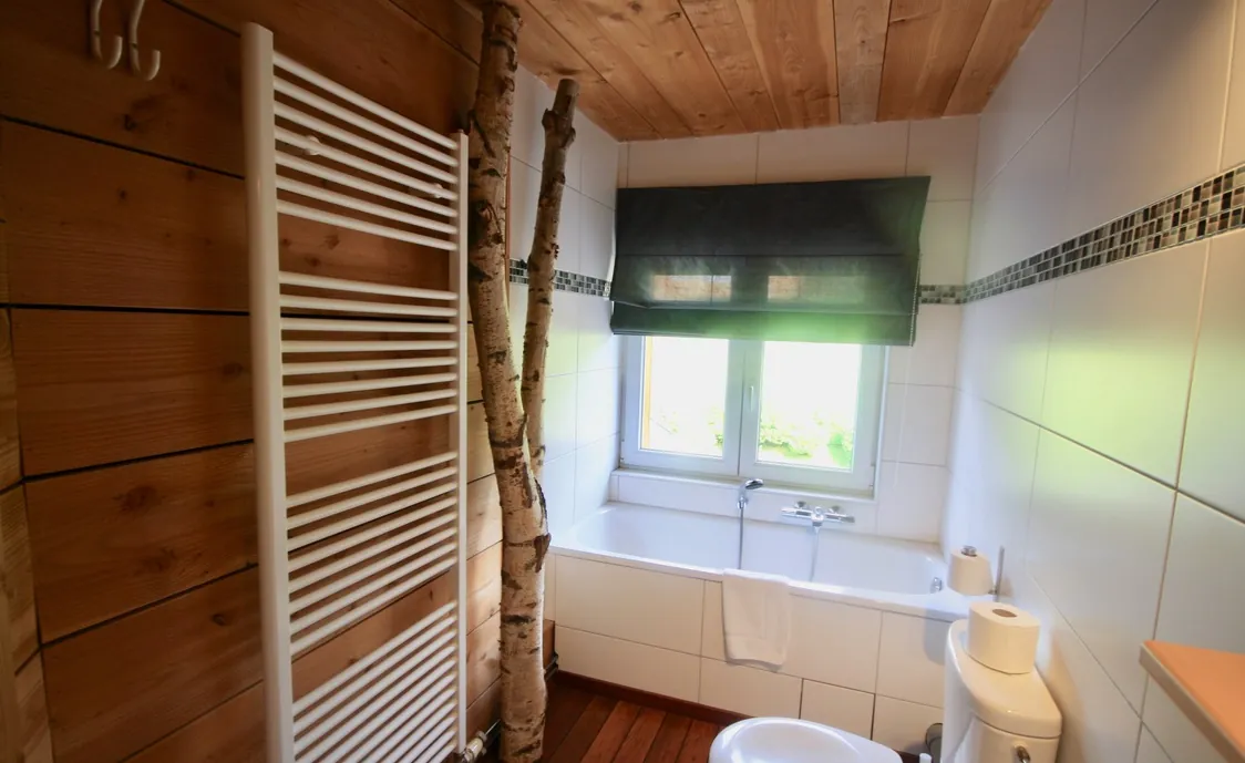 • Schlafzimmer 1 für 4 Personen und privatem Badezimmer mit Badewanne: 1 Doppelbett und 1 Etagenbett
