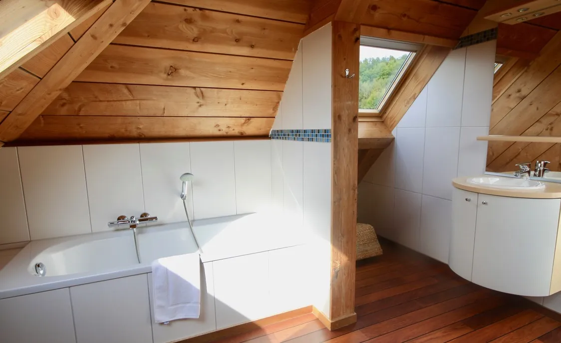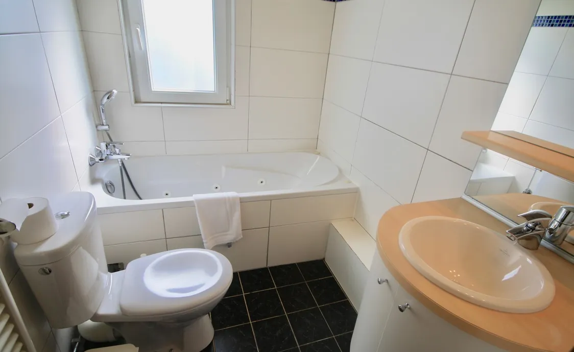 • Schlafzimmer 9 für 2 Personen mit privatem Badezimmer mit Badewanne: 1 Doppelbett