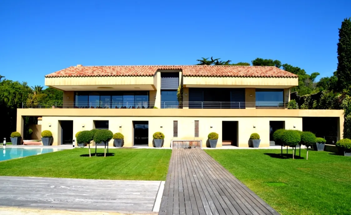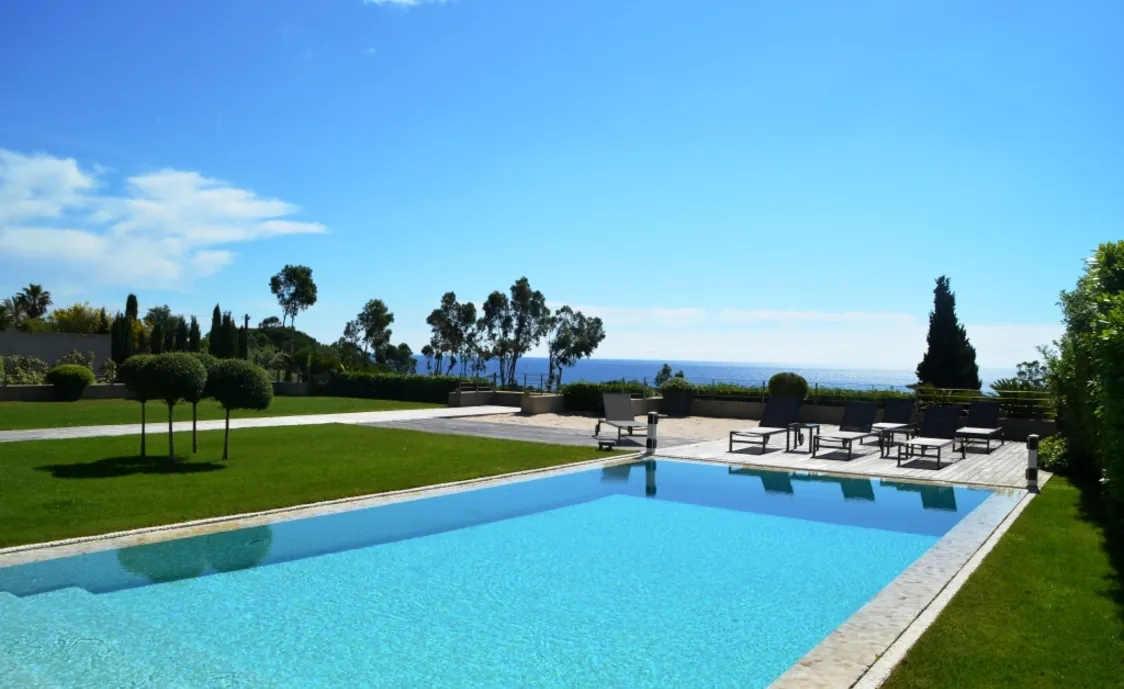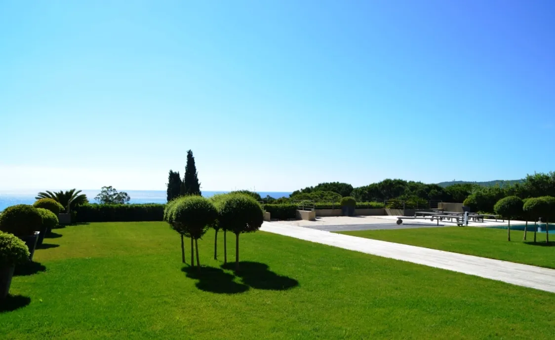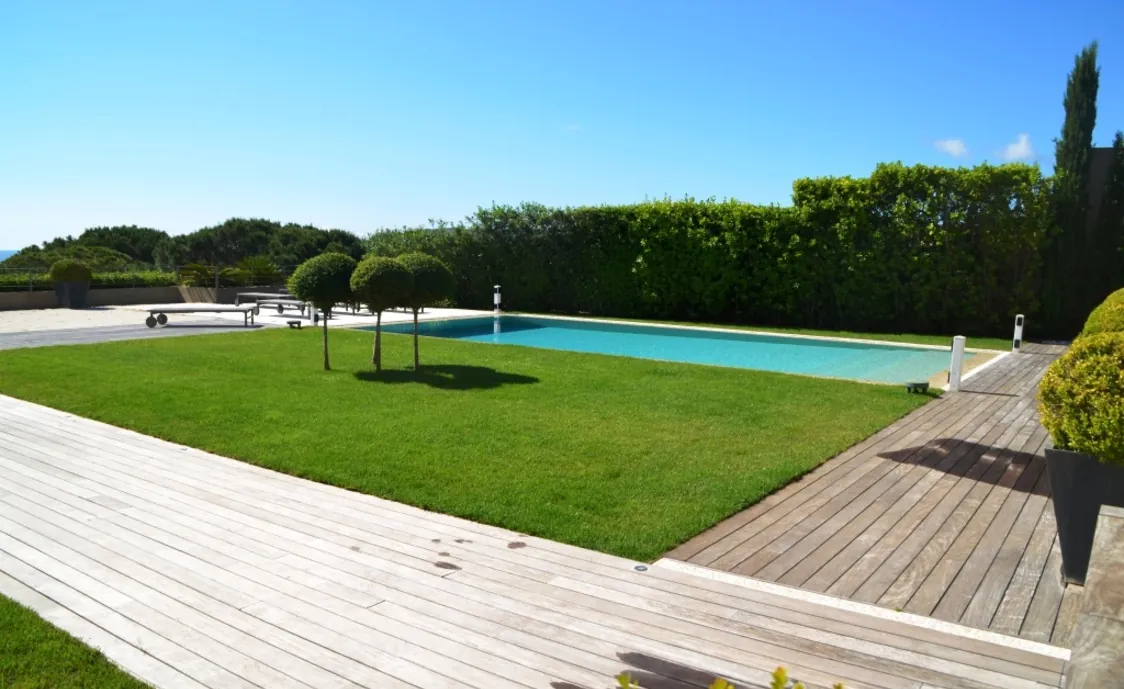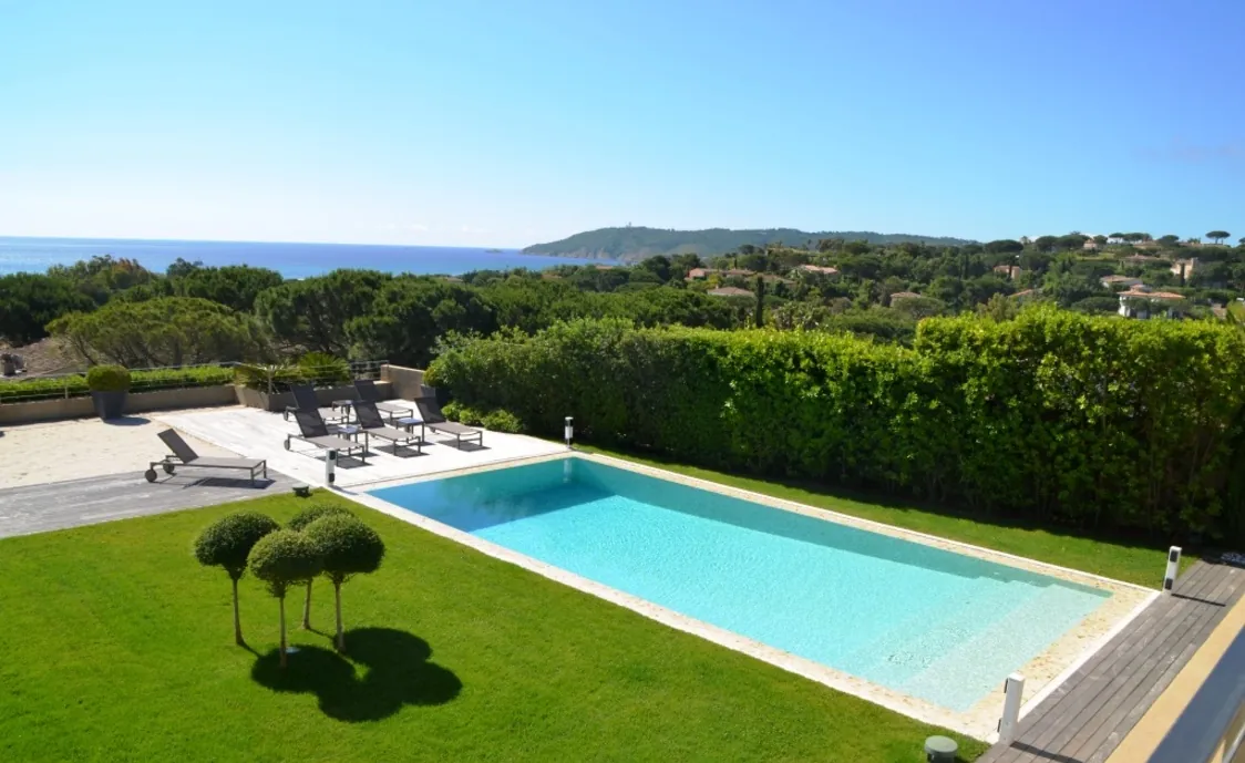 Der beheizte Pool mit den grossen Grünflächen rundherum lassen dann keine wünsche mehr offen in diese schönen Luxus Villa in Saint Tropez.