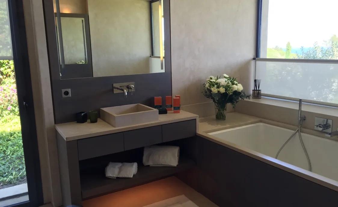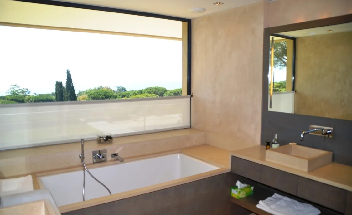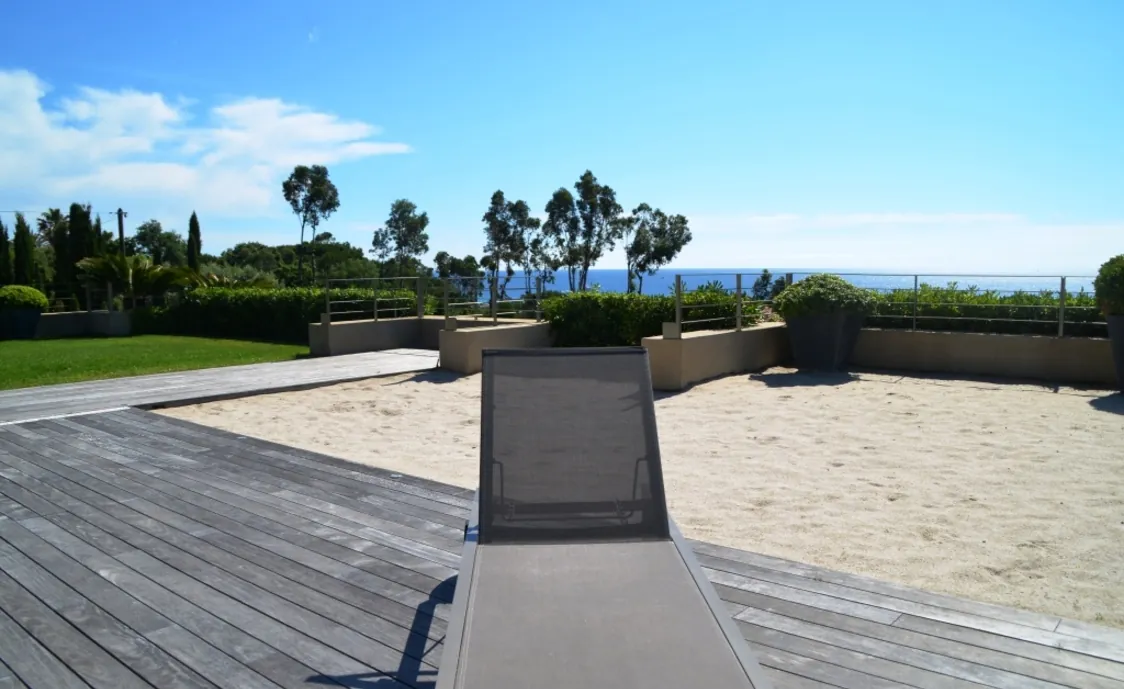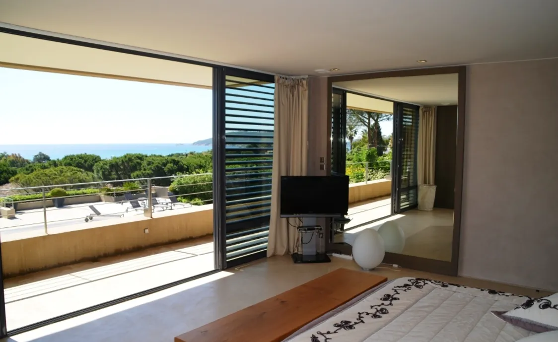 der Nähe des berühmten Club 55. Sehr ruhige Lage mit einem traumhaften Ausblick auf das Meer und circa 5 Minuten zu Fuss zum Strand von Pampelonne welcher der angesagteste Strand in Saint Tropez ist. Nikki Beach ist auch fussläufig zu erreichen. Zahlreiche Restaurants sind am Strand von Pampelonne wieder zu finden. Wer St Tropez auf eine ganz exklusive Weise verbringen möchte wird hier nicht enttäuscht sein.