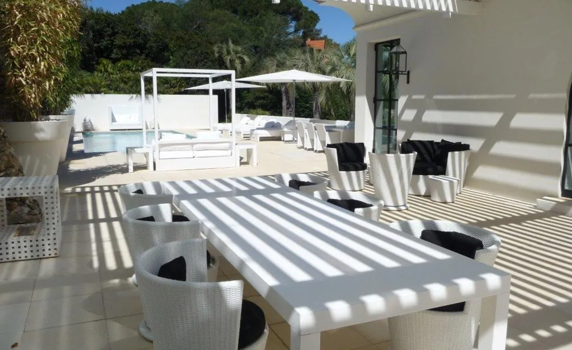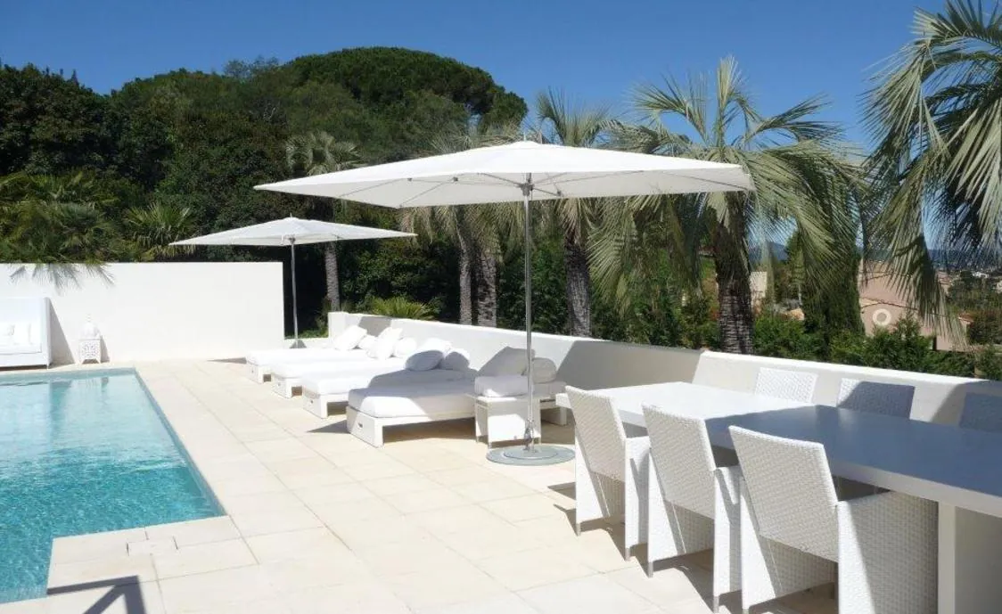 Ein schönes Design und moderne Villa mit herrlichem Meerblick über die Bucht von Canoubiers. In der Nähe des Stadtzentrums (900m) und nur ein paar Minuten Fahrt nach Tahiti Beach.