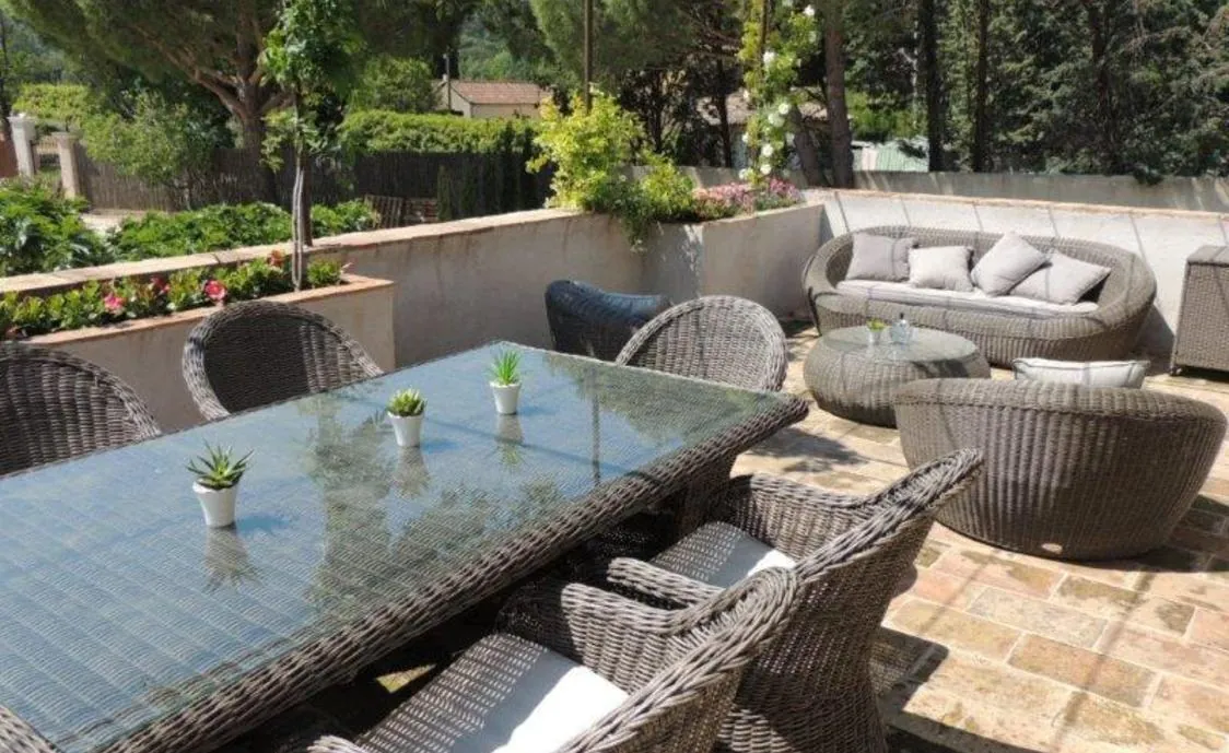 - * Unabhängiges Gästehaus: 2 Schlafzimmer mit 2 Duschbädern und Terrasse (Sofas) oder Gäste-Suite