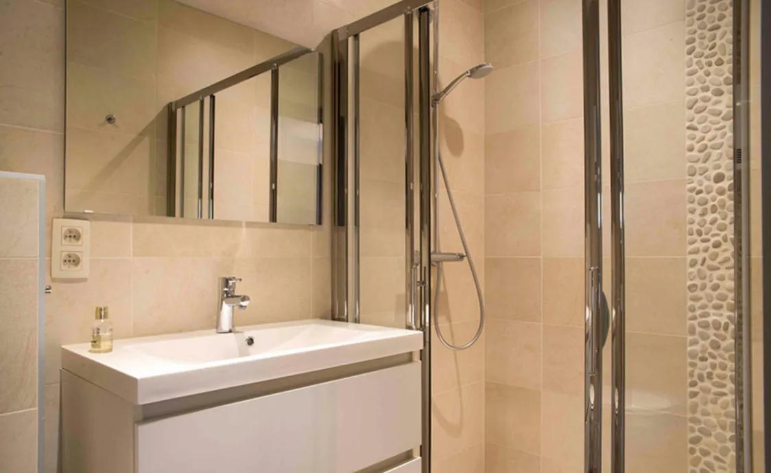 • Schlafzimmer 9 mit privatem Badezimmer mit Dusche: 1 Doppelbett