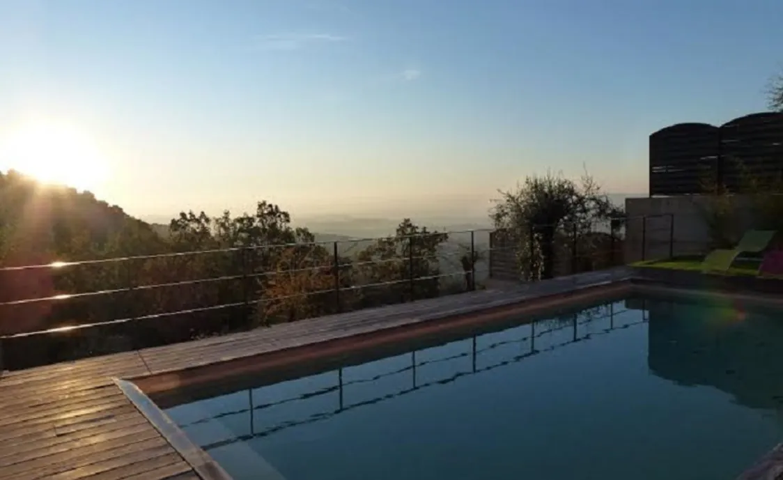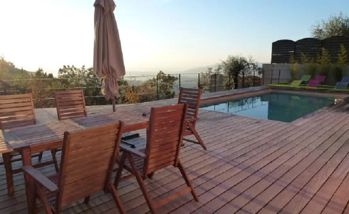 Im Außenbereich finden Sie den privaten Pool (8×4 Meter) und die tolle Terrasse mit unglaublichen Blick zum Meer und Tal. Hier auf der Terrasse werden Sie sich erholen können, Sei es am Pool oder auf der Terrasse. Genießen Sie romantische Sonnenuntergänge an der Côte d'Azur!