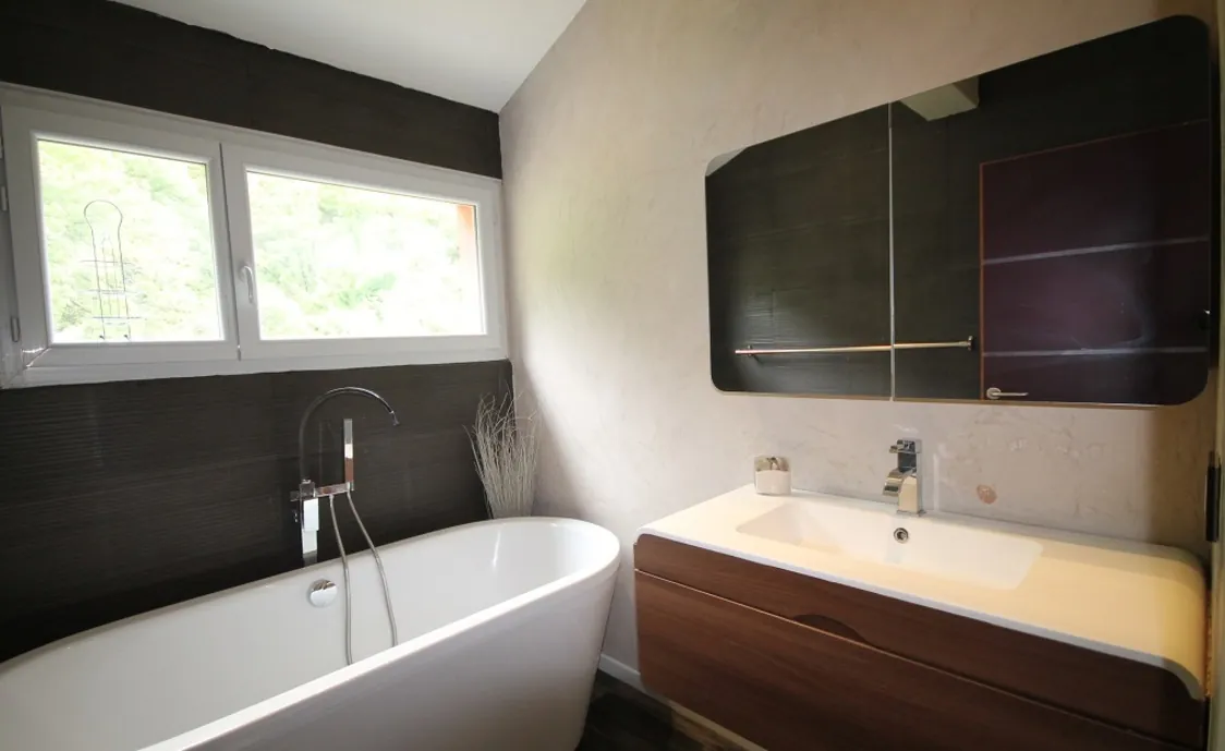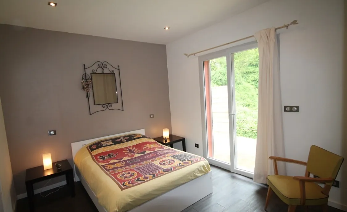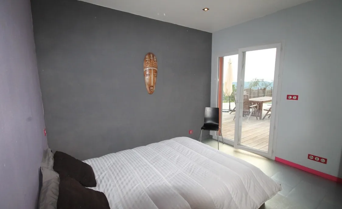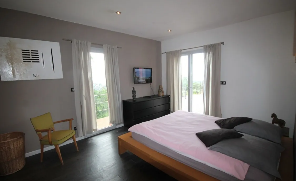 • 1 Schlafzimmer mit Doppelbett, Badezimmer und direktem Zugang zur Terrasse