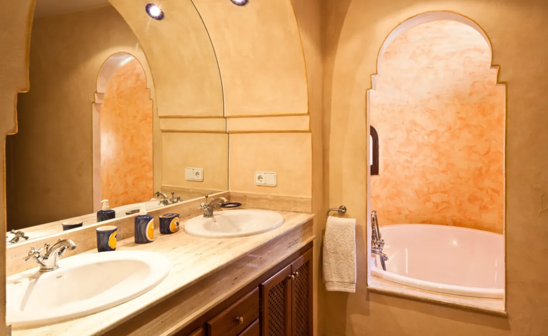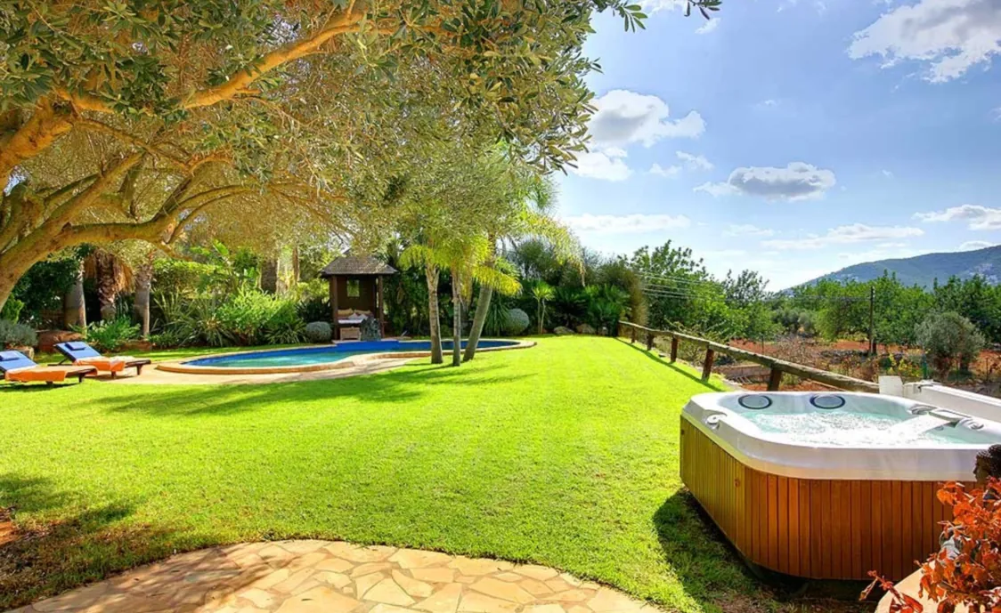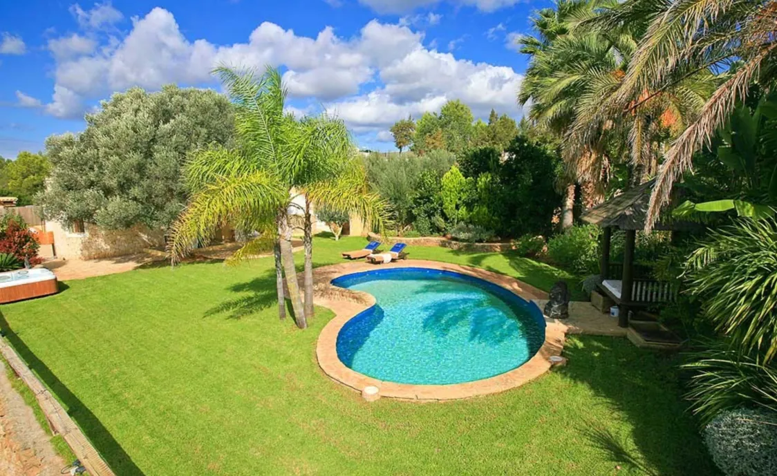 Der Außenbereich ist das Highlight des Hauses. Der große Garten bietet viele Plätze an denen Sie sich entspannen und die Sonne genießen können, wie zum Beispiel, die große Terrasse mit diversen Sitzmöglichkeiten oder ein kleiner süßer Pavillon. Nicht zu vergessen sind natürlich der private Pool und es gibt sogar einen Whirlpool.