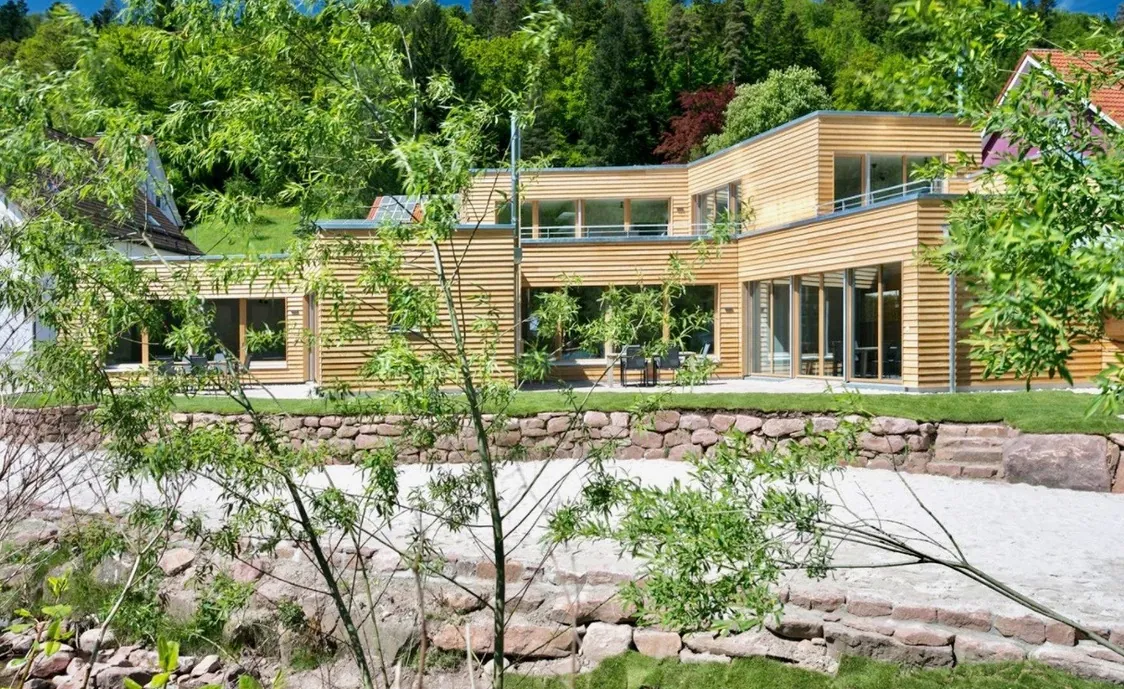 Die grossen Terrassenfenster sind zum Süden gerichtet und bieten eine einzigartige Aussicht auf die umliegende Natur.