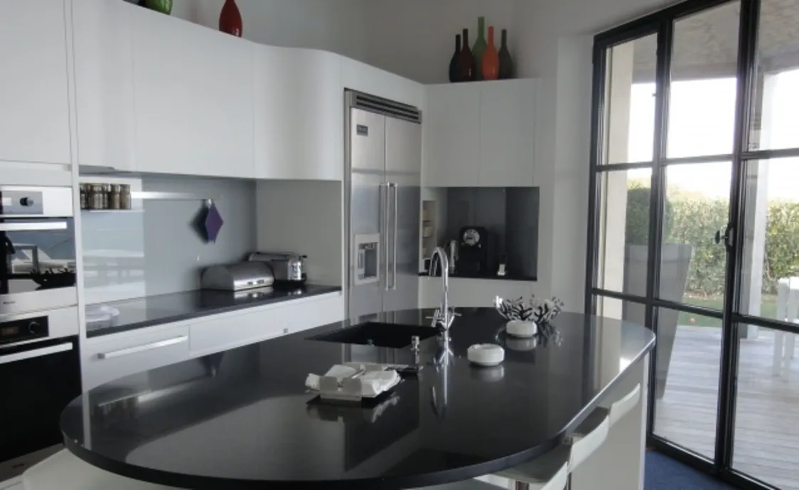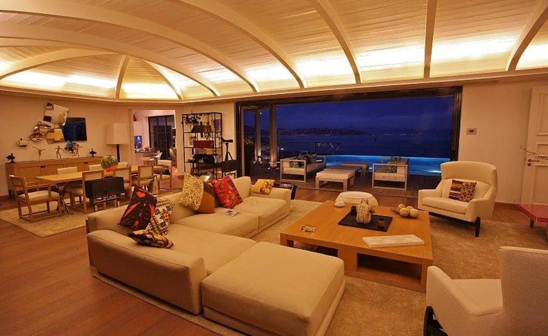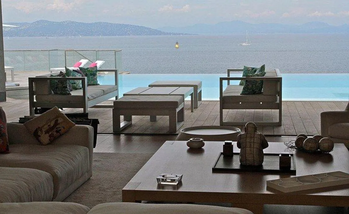 - Offenes Wohn – Esszimmer mit Zugang zum Innenhof und dem Aussenbereich mit grossen Sitzecken, all dies mit Sicht auf die Bucht von St.Tropez