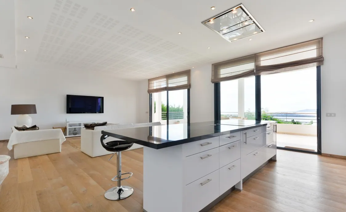 Diese luxuriöse und top-moderne Villa befindet sich in einer exklusiven Lage nahe der Stadt Eivissa. Genießen Sie hier die traumhafte Aussicht auf das Meer und den Strand von Playa de Talamanca, der nur 1 km vom Haus entfernt ist und so schnell zu erreichen ist.