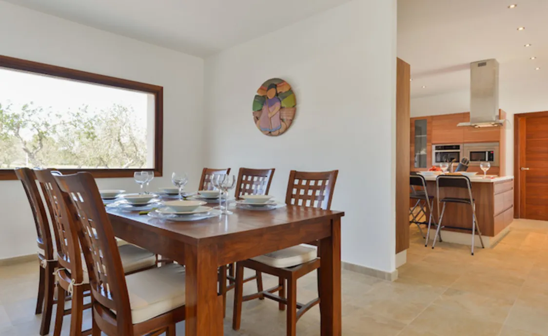 Weiterhin gibt es ein Esszimmer mit angrenzender Küche, die komplett ausgestattet ist.