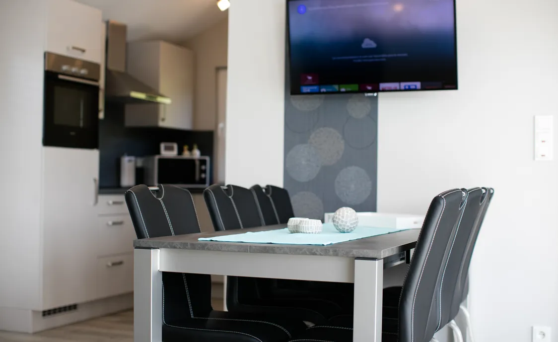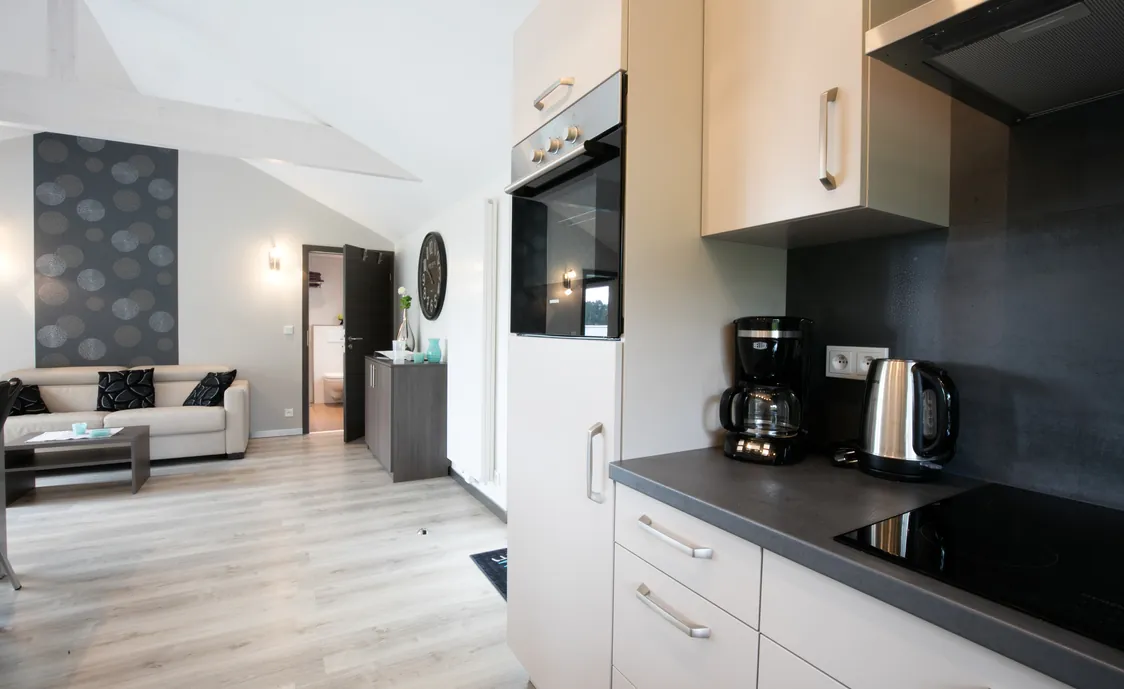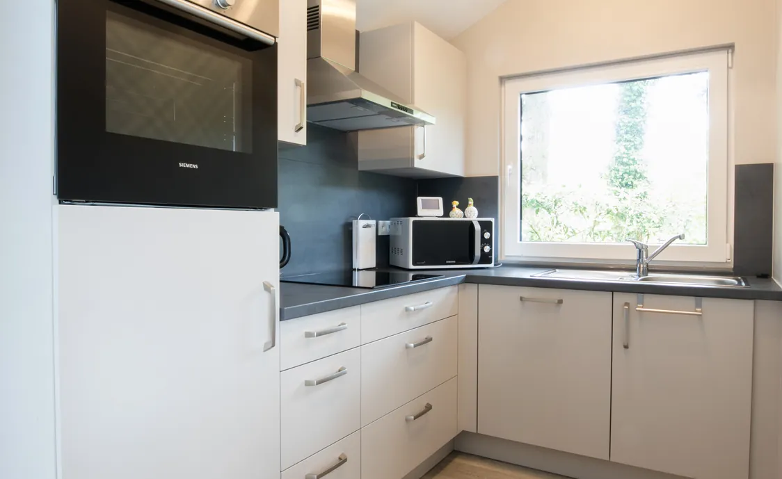 - Ausstattungen: Backofen, Elektrische Kochplatten, Gefrierschrank, Geschirrspüler, Kochplatten, Kühlschrank, Mikrowelle