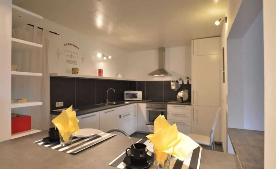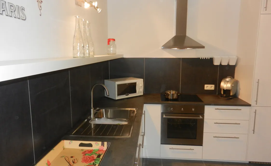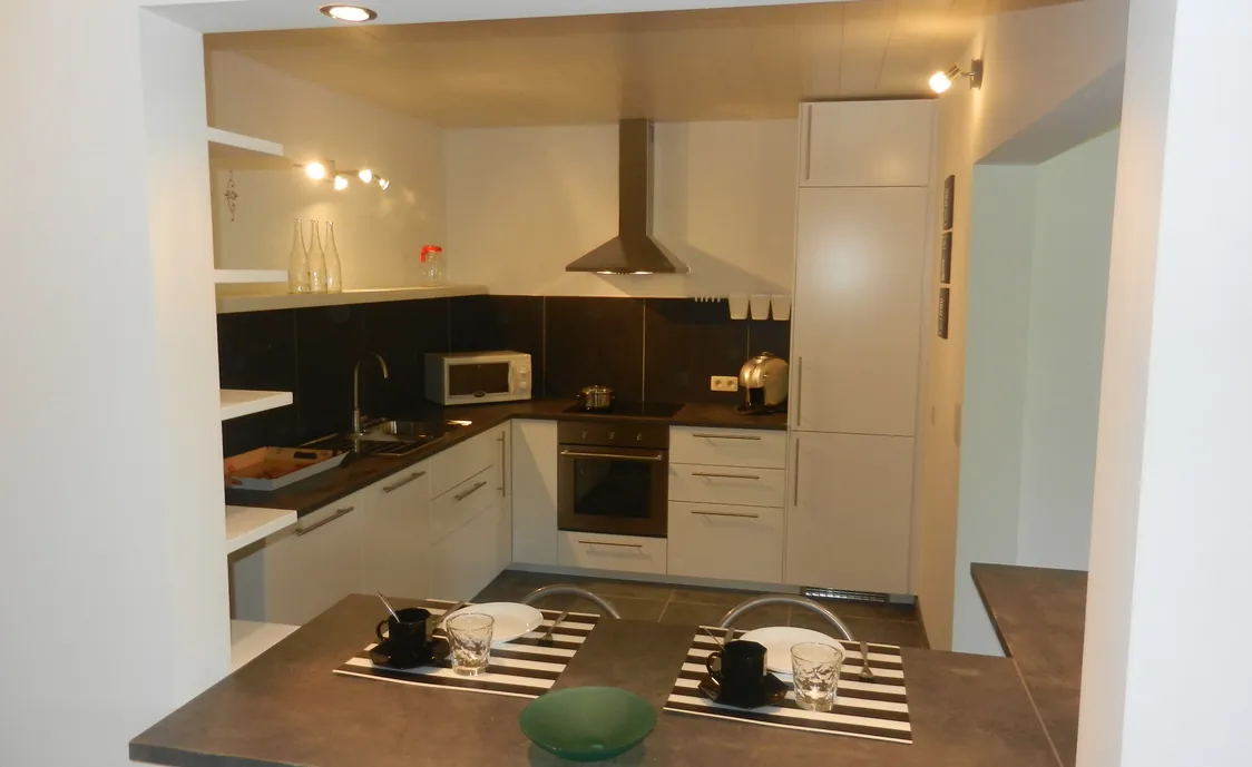 - Ausstattungen: Backofen, Elektrische Kochplatten, Geschirr und Besteck, Geschirrspüler, Kaffeemaschine, Kochplatten, Küchenutensilien, Kühlschrank, Mikrowelle, Waschmaschine