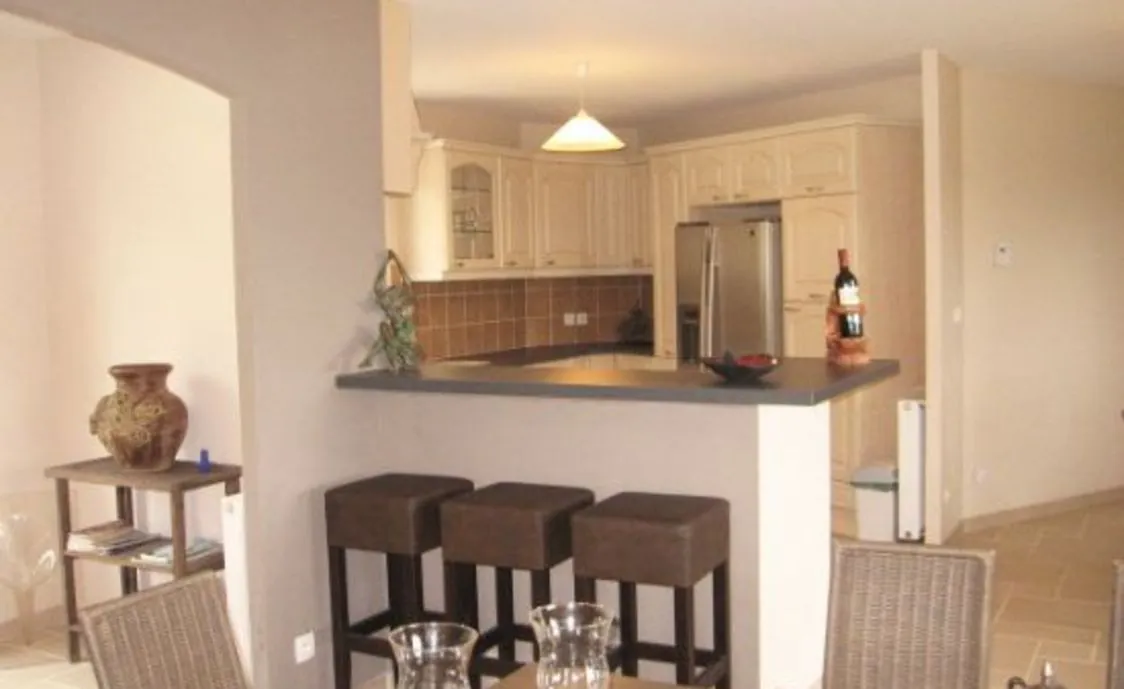 - voll ausgestattete, luxuriöse Küche mit amerikanischem Kühlschrank (+Gefrierfach), Backofen, Mikrowelle, Geschirrspüler, Bar mit Stühlen.