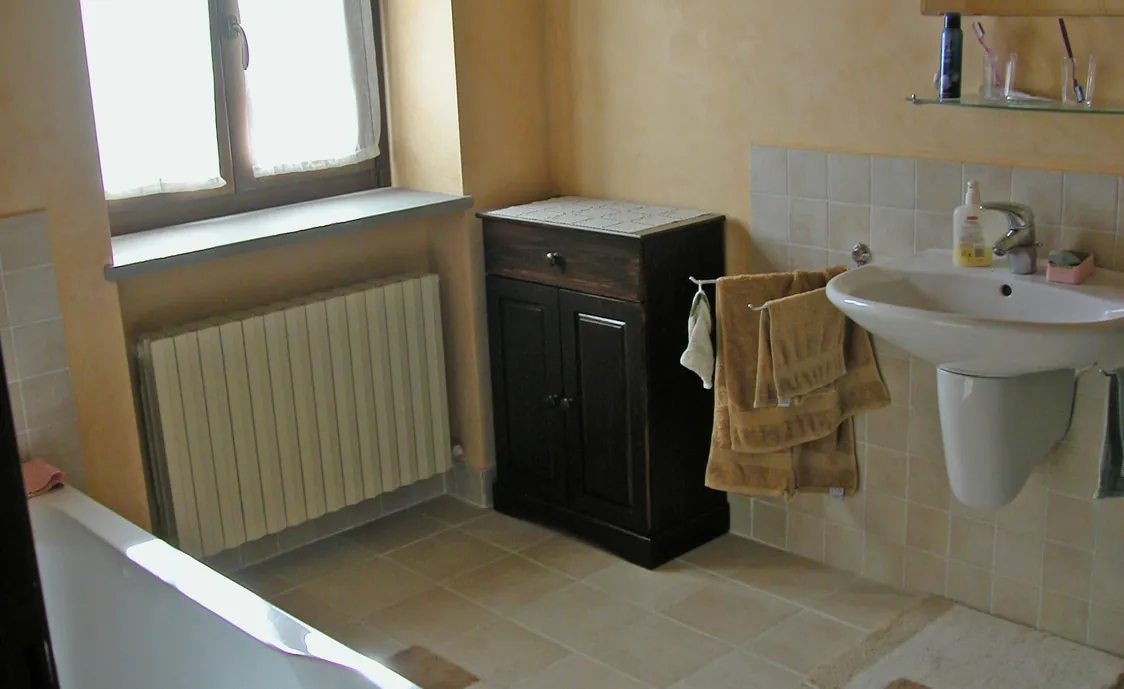 Ein Bad mit Wanne und ein zweites mit Dusche sowie jeweils Waschbecken, WC und Bidet sorgen für das Wohlbefinden.