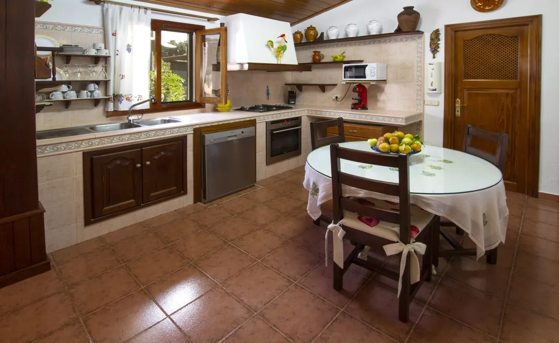 Die Küche ist komplett ausgestattet und ist direkt mit dem Essbereich verbunden.