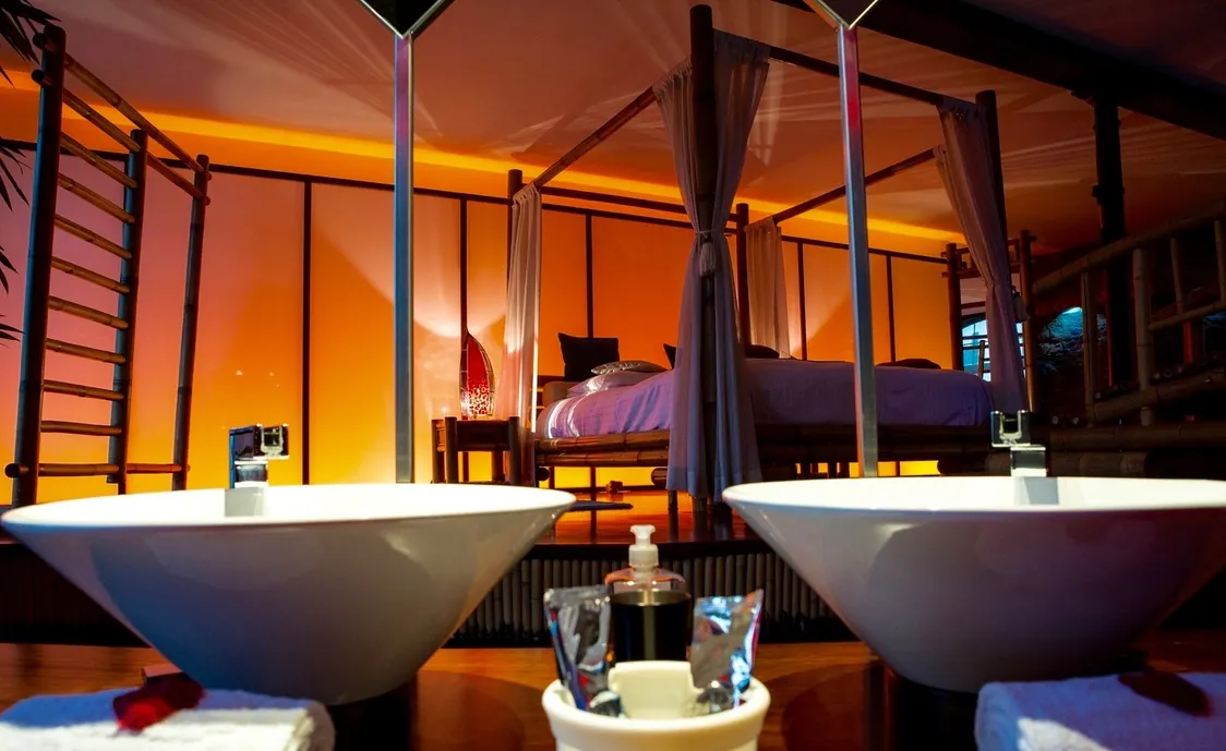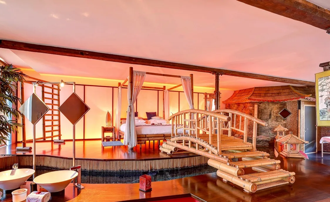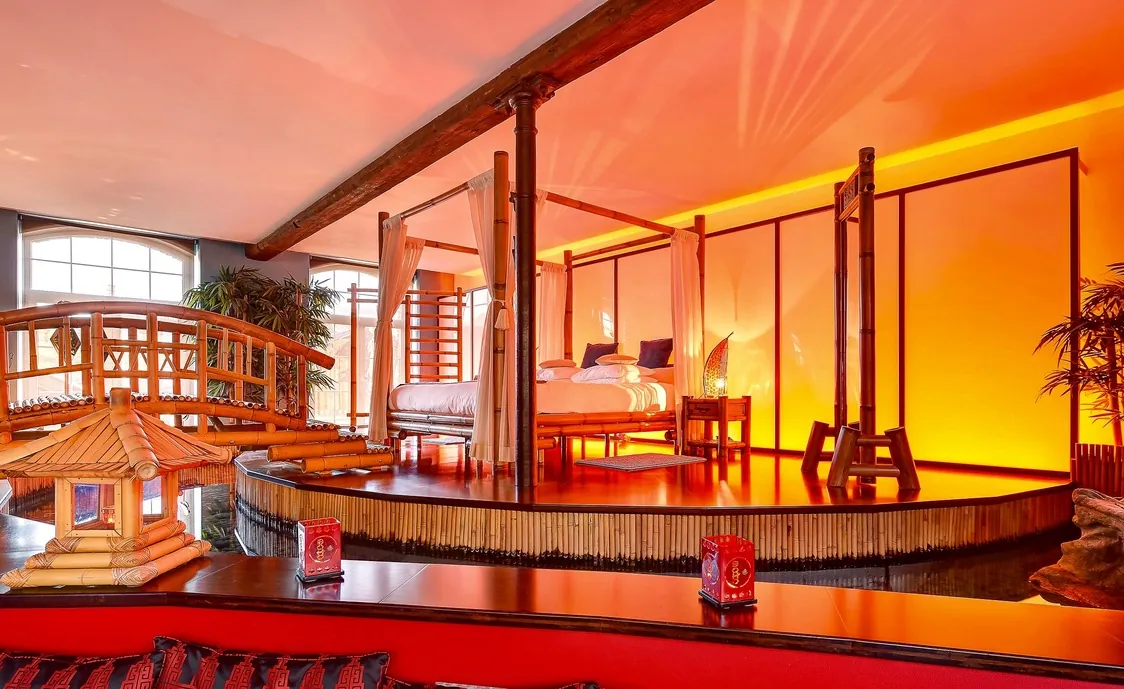 Die Suite ist im asiatischen aber modernen Stil und mit warmen Farben eingerichtet. Die Farbe Rot dominiert in dieser Suite. Außerdem werden Ihnen werden sofort die vielen Ebenen auffallen, die der Suite etwas Besonderes verleihen.
