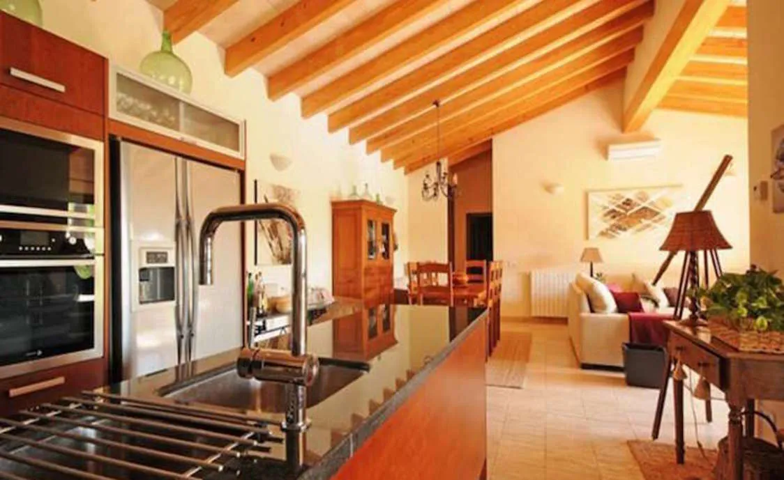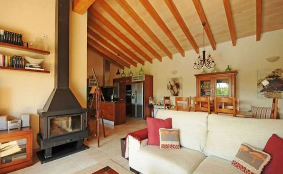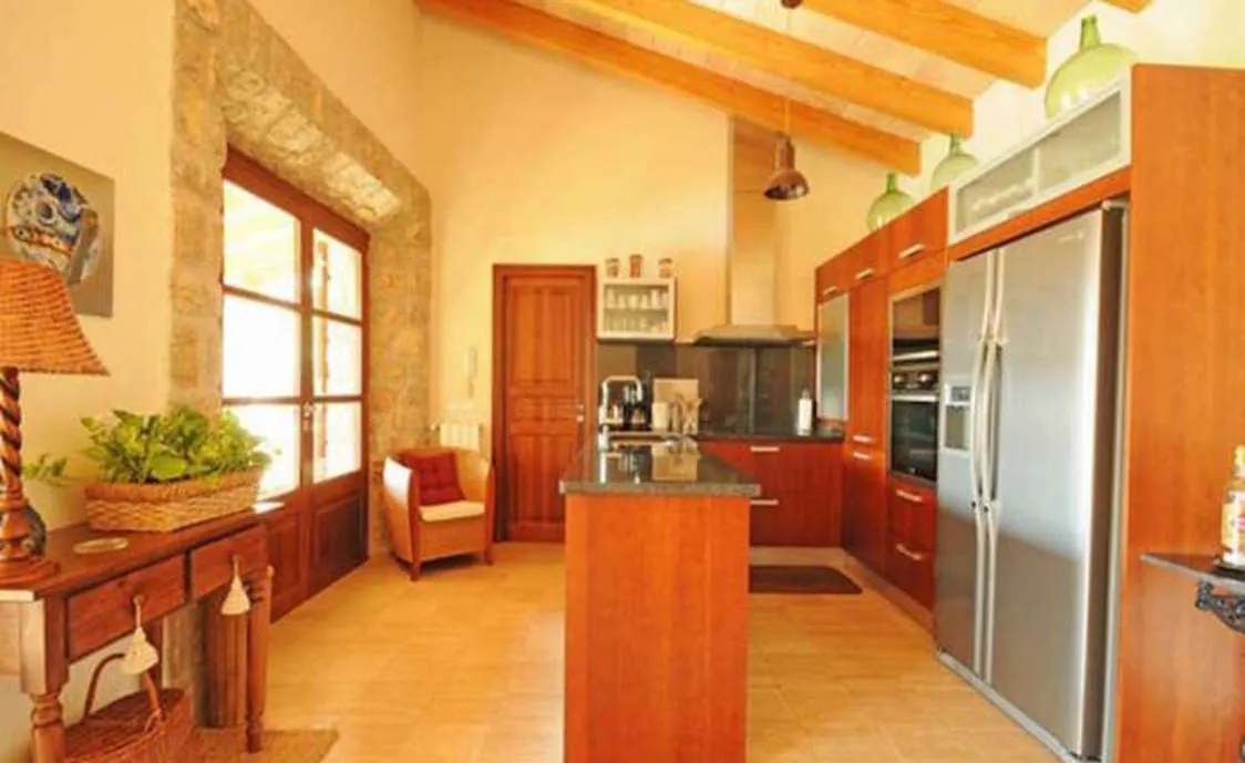 Diese rustikal-moderne Villa liegt in der Nähe von Inca, in einer ruhigen Gegend, in der Mitte von Mallorca.