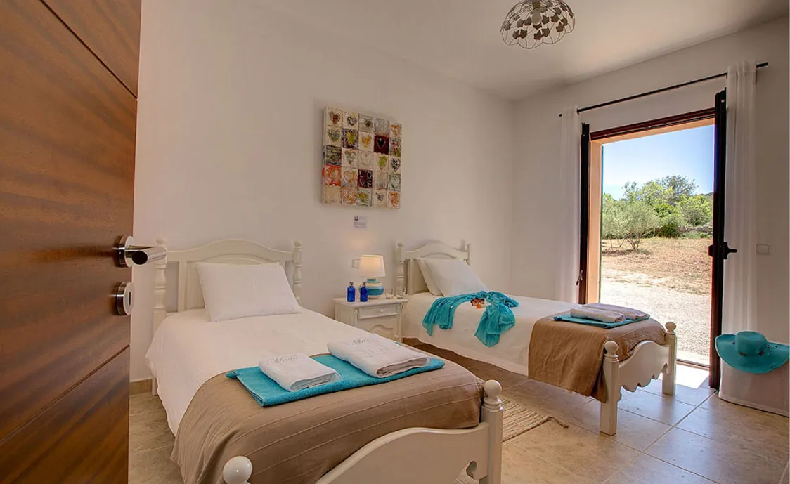 Die Zweibettzimmer, mit eigenem Badezimmer, haben ebenfalls direkten Zugang zum Außenbereich.
