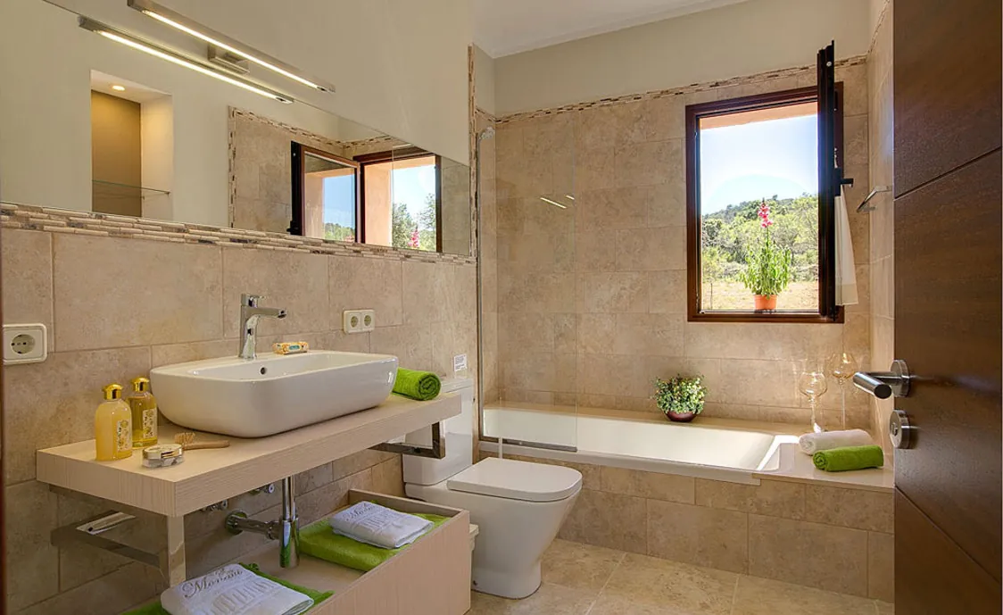 Die Sandstrände sind beide in unmittelbarer Nähe. Innerhalb von 300m finden Sie ein kleines Boutique-Hotel mit einem Restaurant. In der Nähe von Cas Concos (2.7kms) und S'Alqueria Blanca (3 km) sind Supermärkte, Bäckereien und Restaurants.