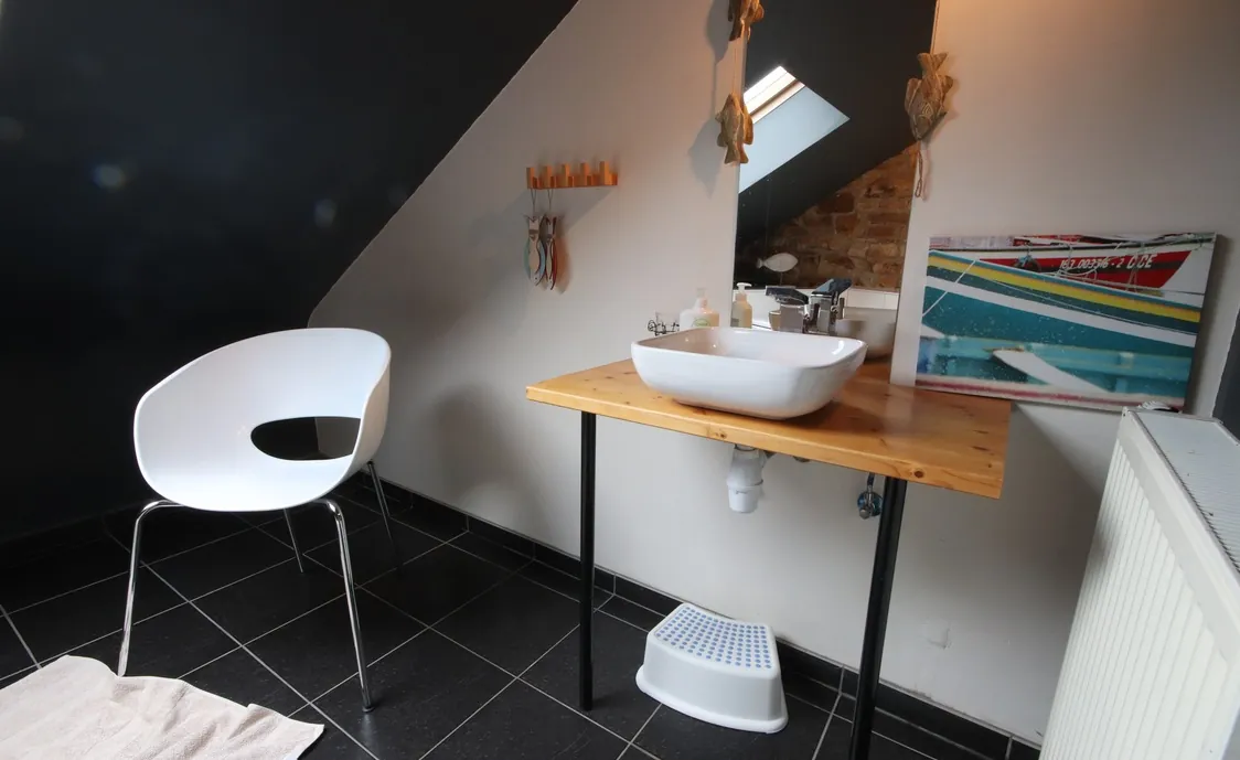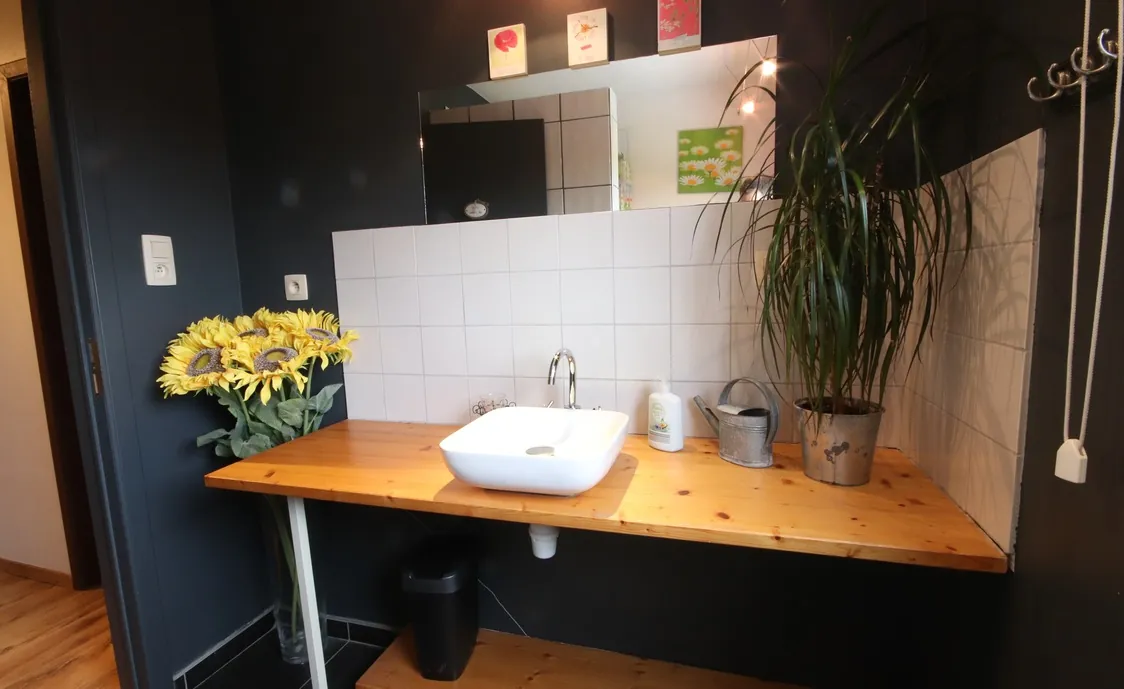 - Badezimmer: Dusche und Waschbecken