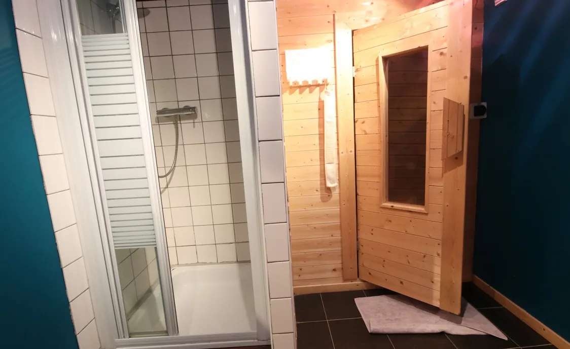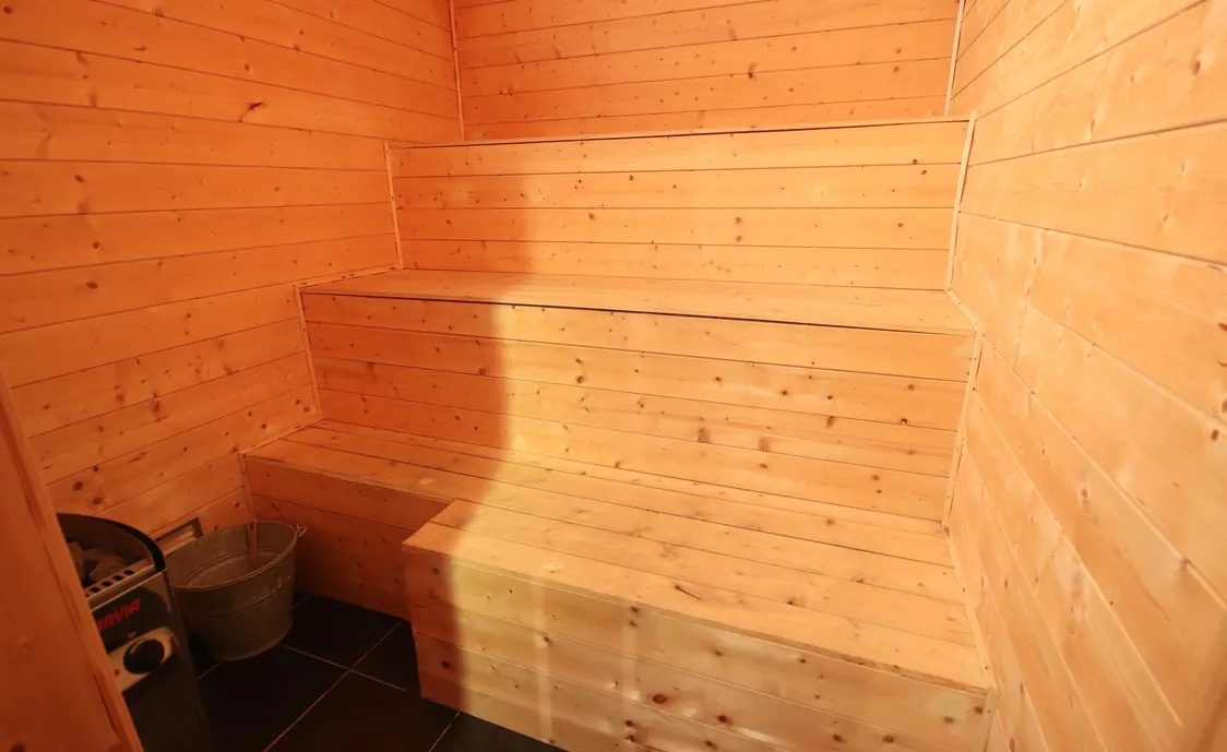 - Entspannungsbereich (Sauna, Dusche, 2 Sonnenliegen)