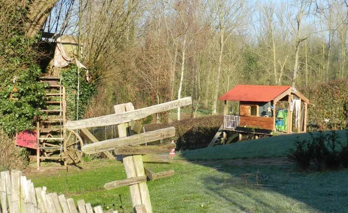 Das Anwesen verfügt über einen 1200m² großen Garten mit Rutsche, Schaukel, Trampolin und Baumhaus