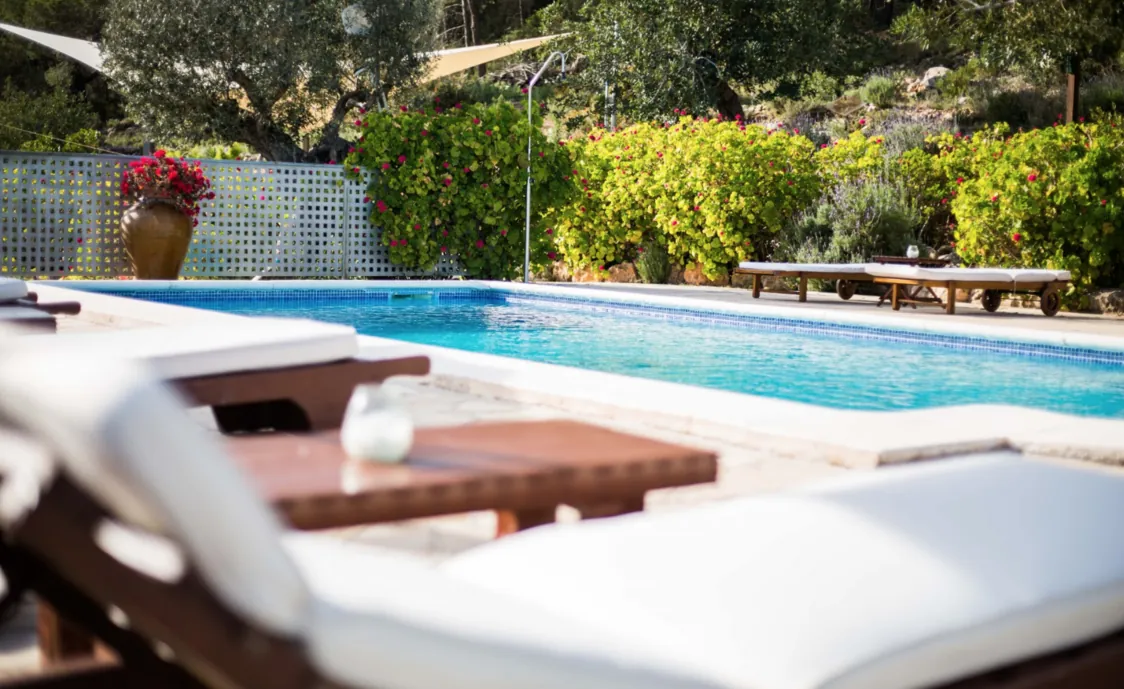 Das 5000m2 grosse Grundstück bietet genug Platz für einen erholsamen Urlaub auf Ibiza.