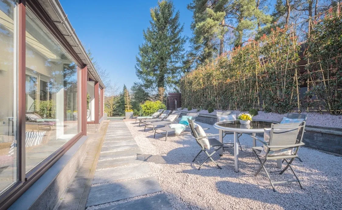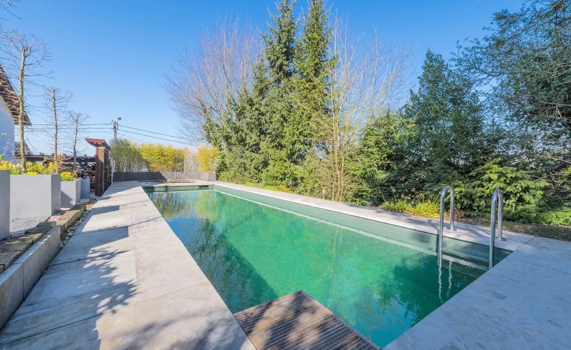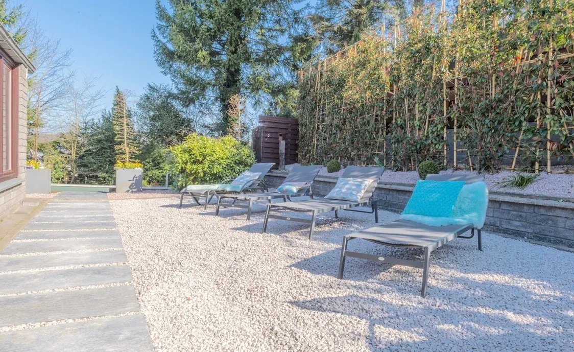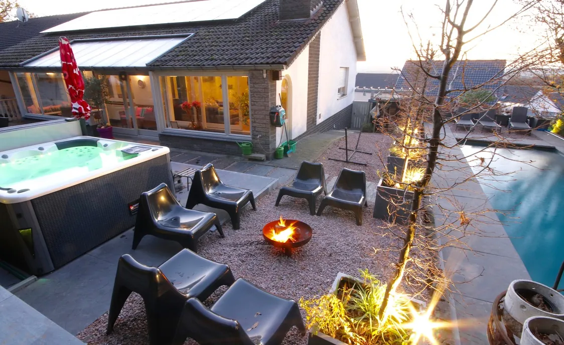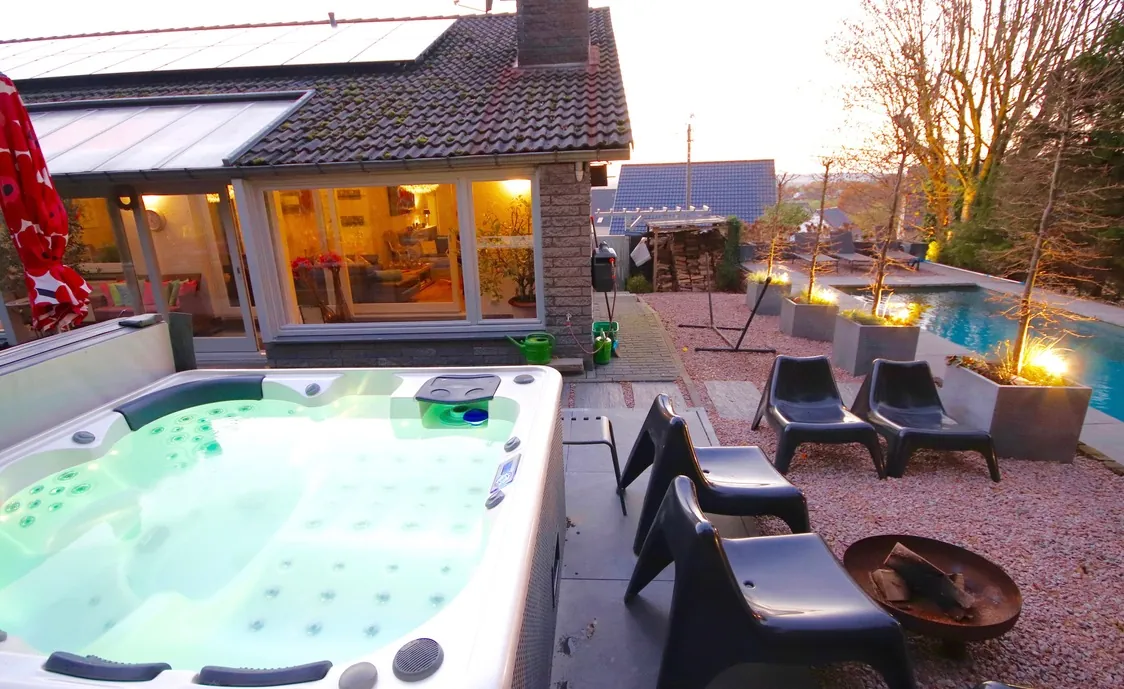 Auch der Außenbereich hat einiges zu bieten. Neben eine Terrasse mit Gartenmöbeln und Grill, gibt es noch einen Jacuzzi, der bis zu 38 Grad warm ist und somit das ganze Jahr über nutzbar ist, sowie einen Pool, der von April bis Oktober beheizt und nutzbar ist. Der Poolbereich ist komplett Sicht-geschützt.