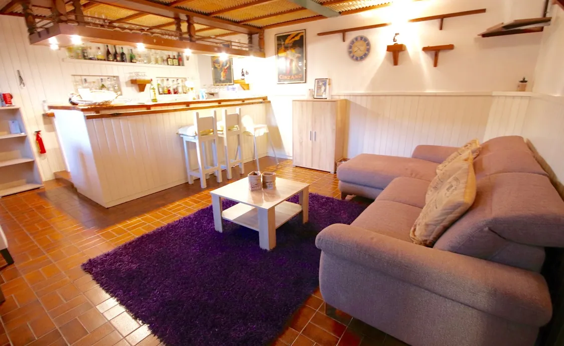 Außerdem bietet das Haus 3 Schlafzimmer mit je einem Doppelbett und 2 Badezimmer. Im Wohnzimmer und in der Bar befindet sich eine Schlafcouch.