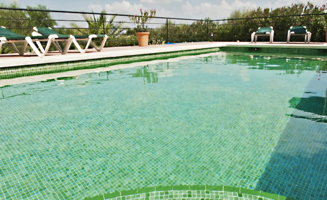 Der Außenbereich verfügt über einen schönen Garten mit einem großen Swimmingpool und Liegestühlen, eine überdachte Terrasse mit Gartenmöbel und eine Grillecke.
