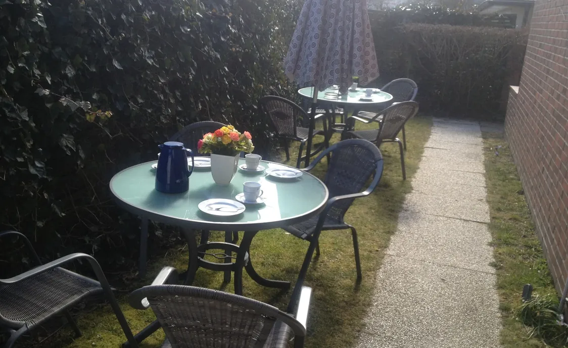 Beschreibung Whg. 3 im 1. OG. mit Gaerten/Rasenanteil und Strandkorb & Gartenmöbel