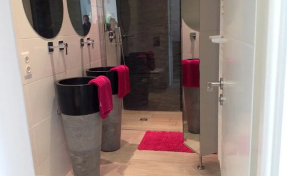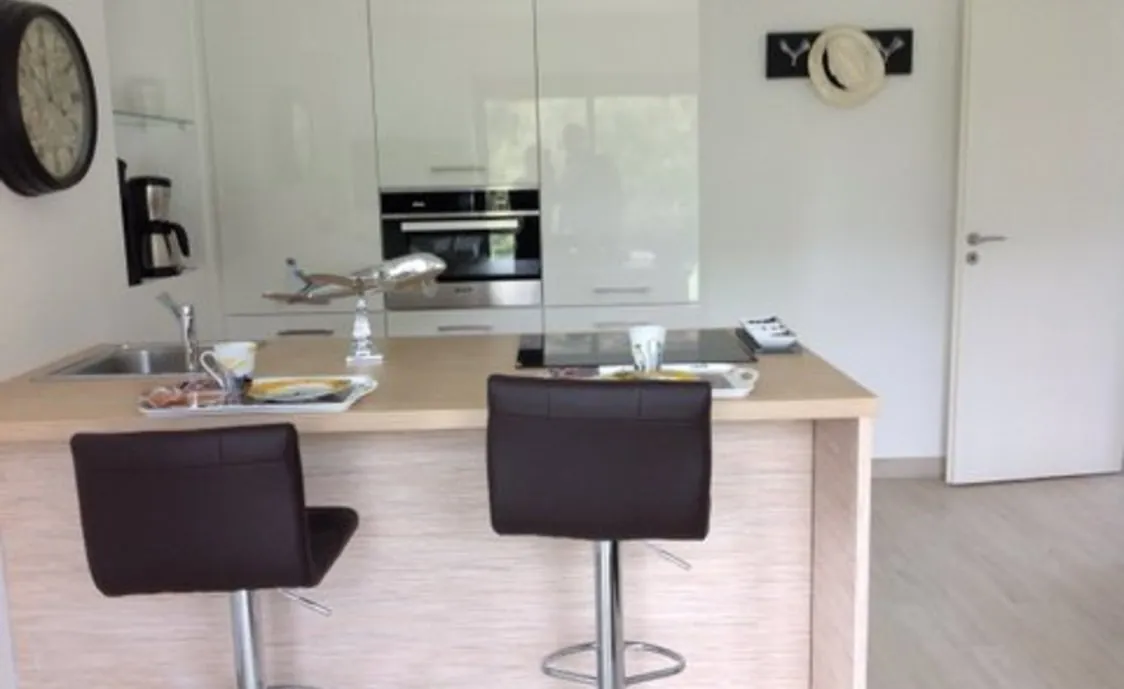 - Ausstattungen: Backofen, Geschirrspüler, Kaffeemaschine, Kochplatten, Kühlschrank