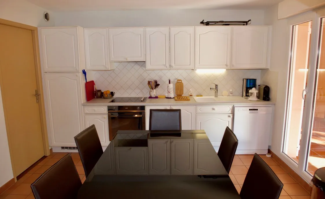 - Ausstattungen: Backofen, Gefrierschrank, Geschirr und Besteck, Geschirrspüler, Kochplatten, Küchenutensilien, Kühlschrank, Mikrowelle, Waschmaschine