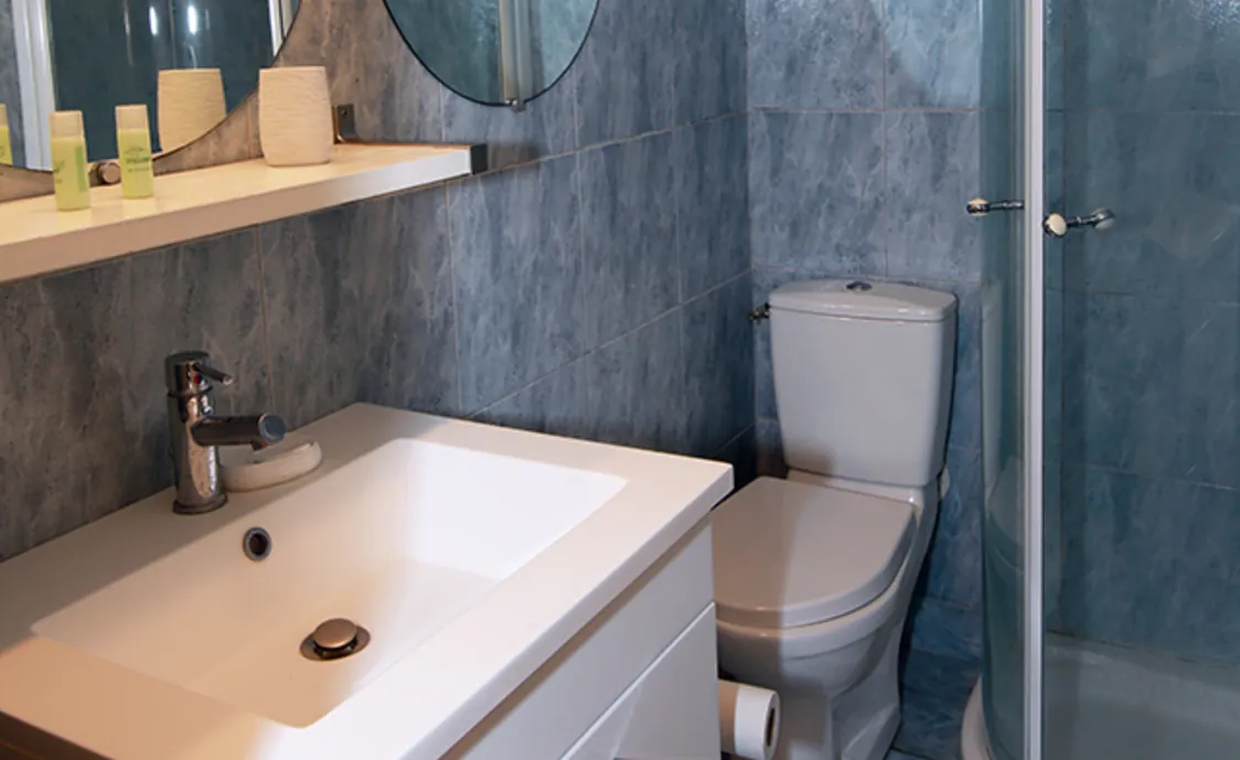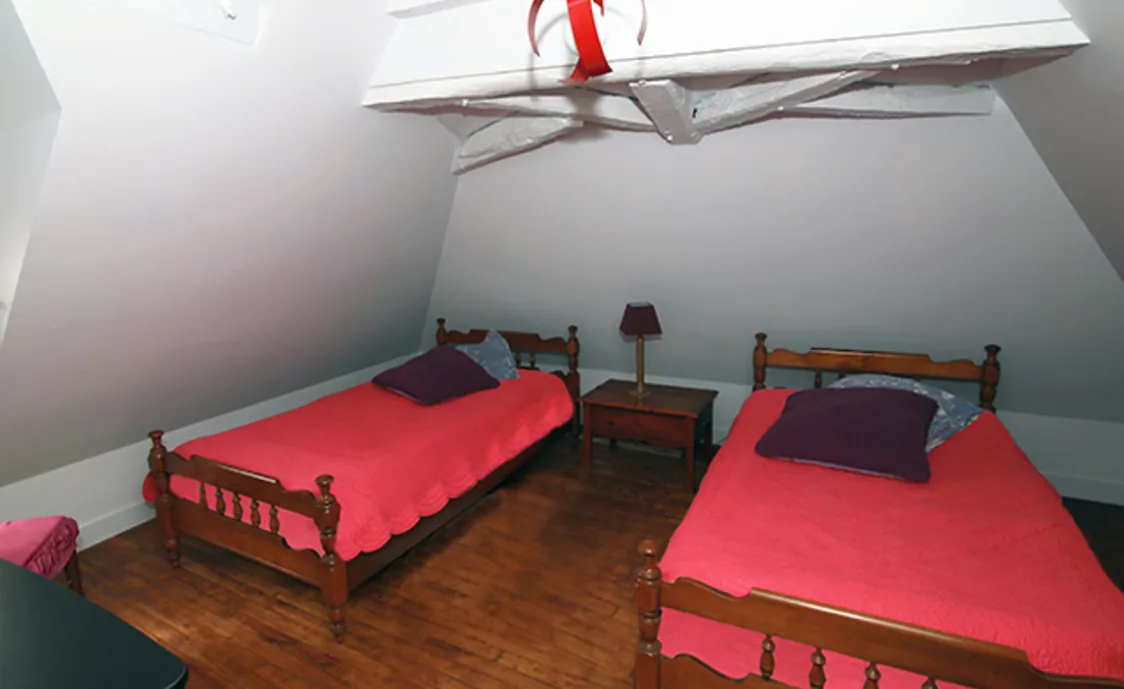 Es gibt zwei Schlafzimmer und ein Badezimmer. Ein Schlafzimmer hat ein Doppelbett und das andere verfügt über 2 Einzelbetten.