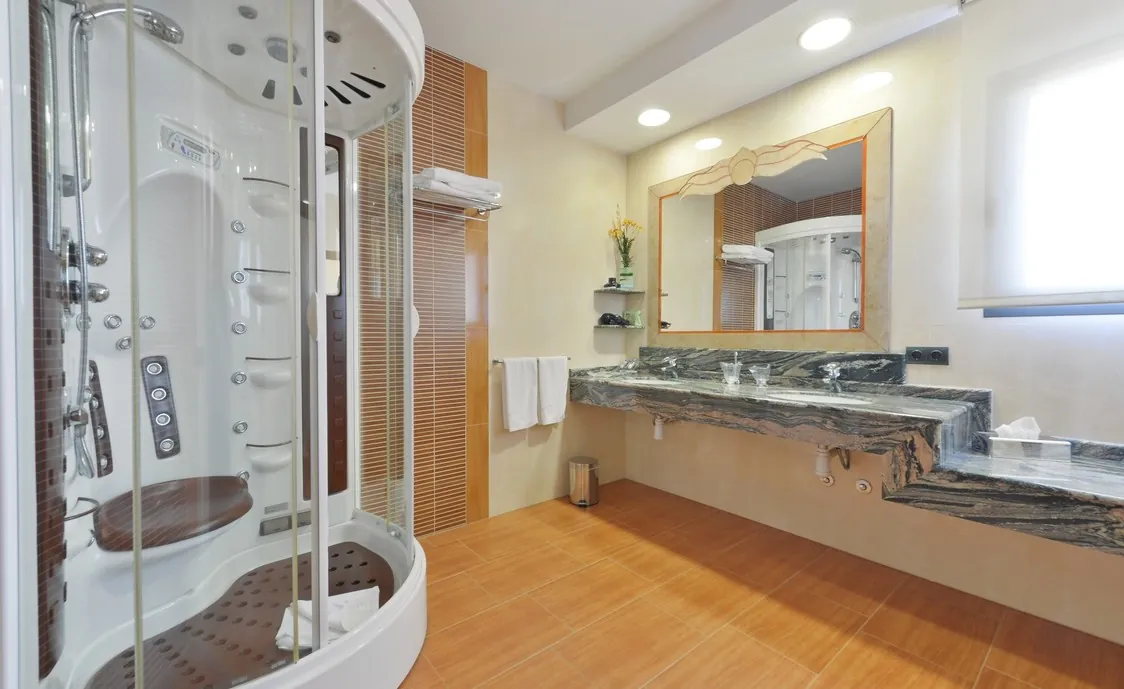Es gibt insgesamt 10 Schlafzimmer. Jedes Schlafzimmer hat sein eigenes Ankleidezimmer mit großen Schränken und Spiegel, ein eigenes Bad und ein Fernseher.