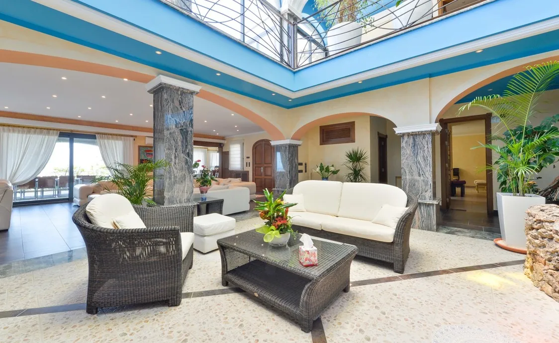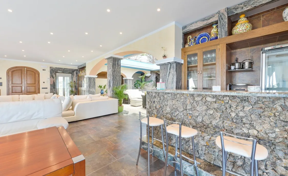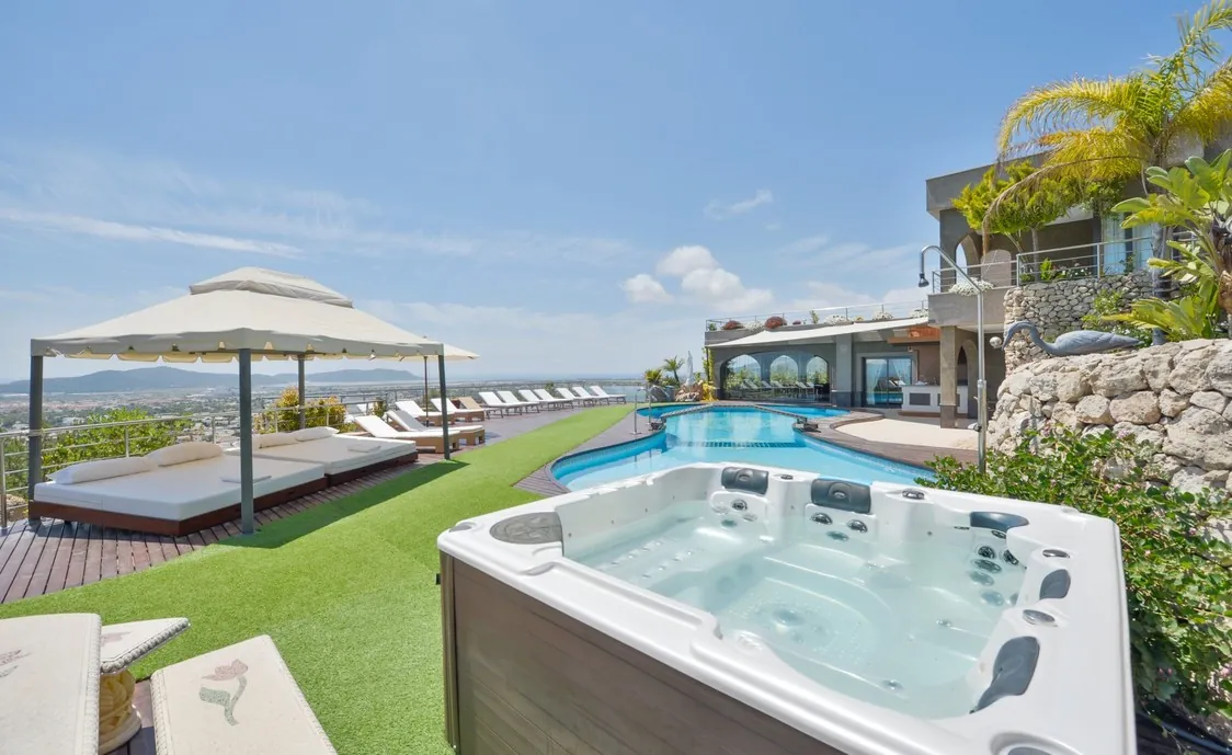 Der Außenbereich ist das größte Merkmal dieser Villa. Unglaublich schön dekoriert und ausgestattet, es wird Ihnen den Atem rauben. Ein großer Pool direkt neben der Terrasse mit Sonnenliegen, Whirlpool und atemberaubenden Blick bis hin zum Meer, es ist der perfekte Ort um sich zu entspannen.