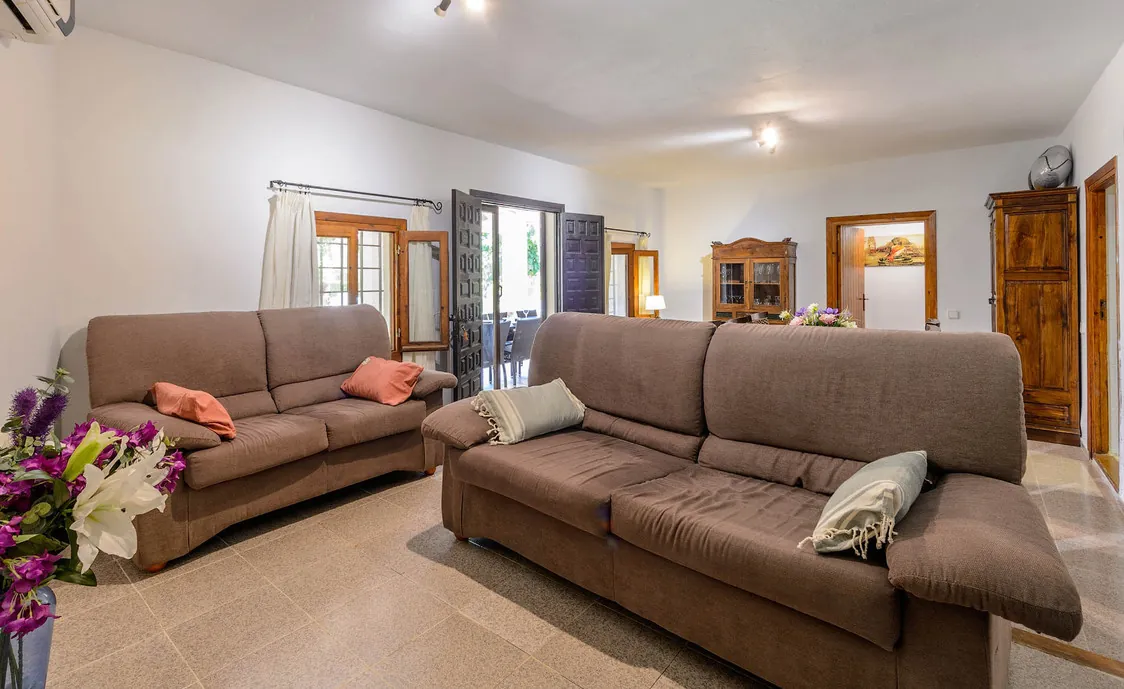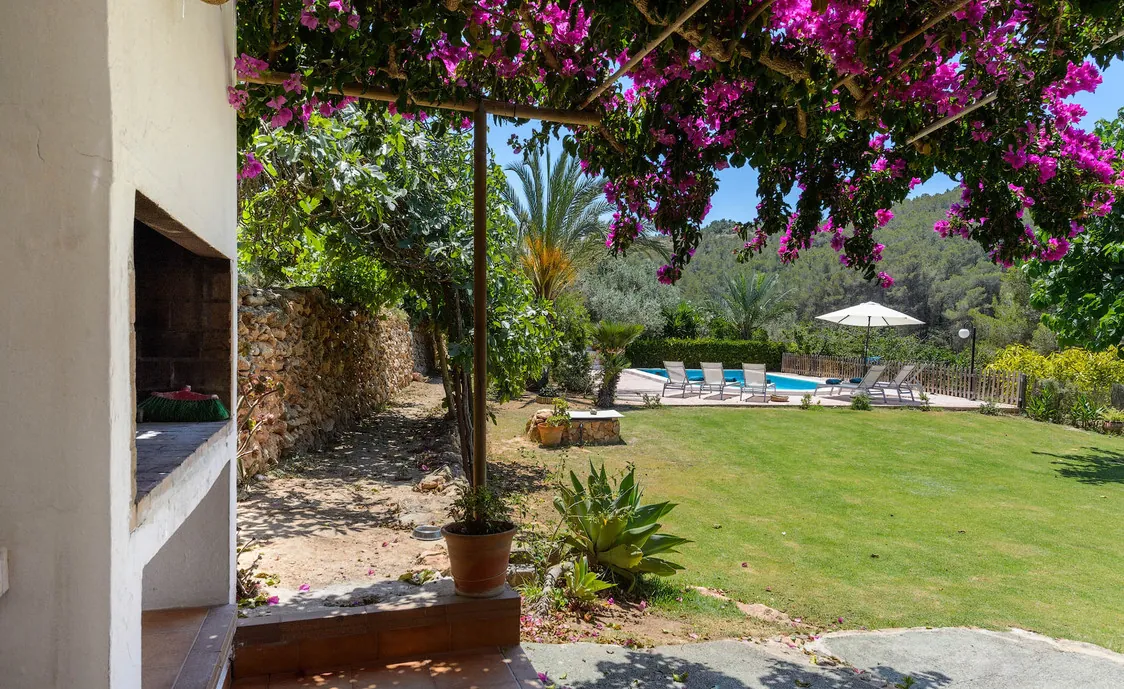 Im Außenbereich finden Sie den großen Swimming-Pool mit Liegestühlen, der umgeben ist von einem schönen Garten mit allerlei Obstbäumen. Auf der Terrasse gibt es ein eingebautes BBQ.