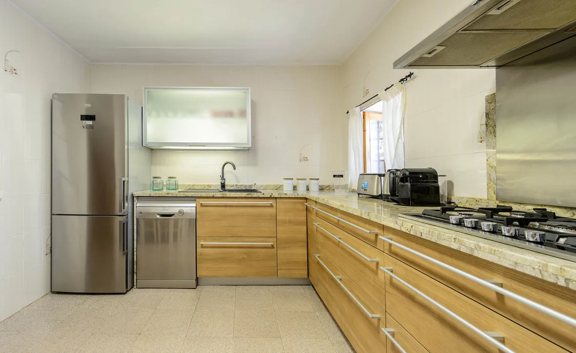 - Ausstattungen: Backofen, Gefrierschrank, Geschirr und Besteck, Geschirrspüler, Haartrockner, Kaffeemaschine, Kochplatten mit Gas, Küchenutensilien, Kühlschrank, Mikrowelle, Waschmaschine