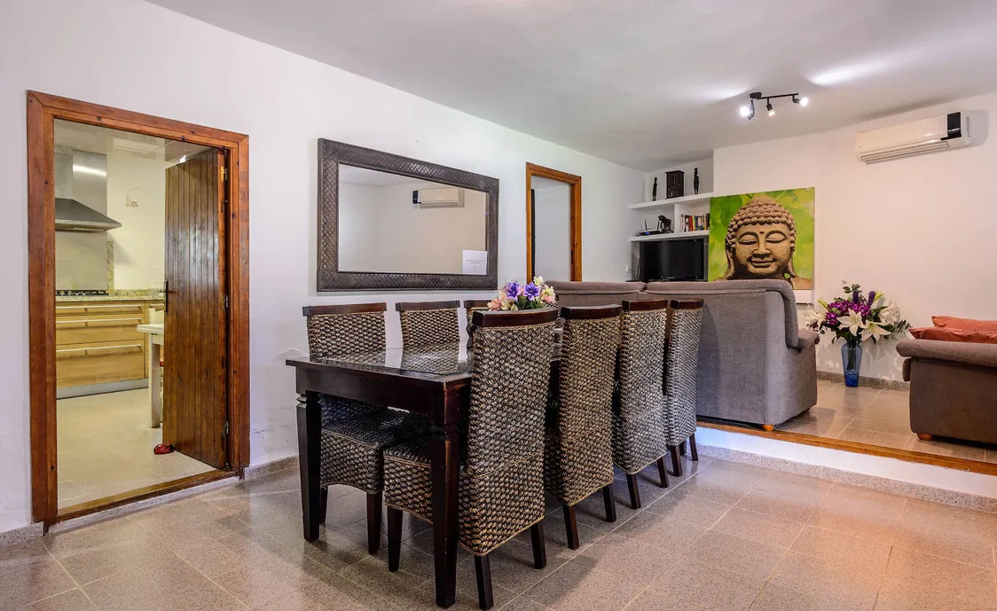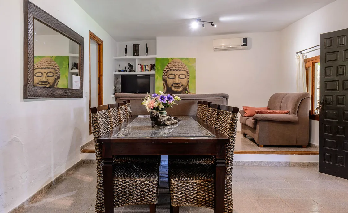 Diese wunderschöne Villa liegt nur 2,4 km Entfernung von dem schönen Strand von Benirras, an dem man die wohl schönsten Sonnenuntergänge von Ibiza bestaunen kann. Das Gebiet in dem sich die Villa befindet ist sehr ruhig und friedlich, perfekt um einen entspannten Urlaub zu verbringen.