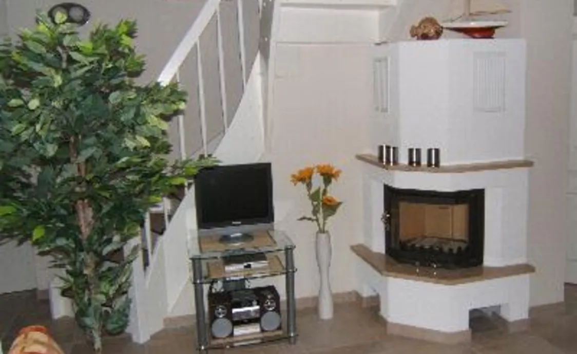 Unmittelbare Strandlage, KAMIN im Wohnzimmer, Balkon mit schönem Blick auf den Deich (in Herbst/Winter z. T. sogar ein bißchen Meerblick, :-)) SAUNA-Nutzung in attraktivem kleinen Saunahaus im Garten, 2 eigene Parkplätze.
